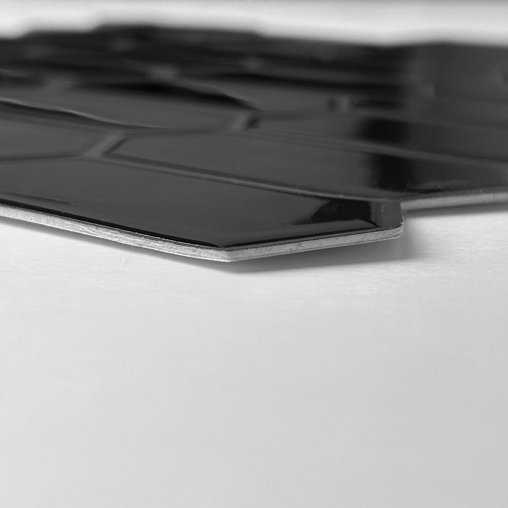 Alexandra Sort er en selvklebende veggflis med en blank, dyp sort overflate som gir et moderne og eksklusivt uttrykk. Flisene er fleksible og kan enkelt monteres uten lim eller fugemasse. Perfekt for rask oppgradering av kjøkken, bad eller gang.