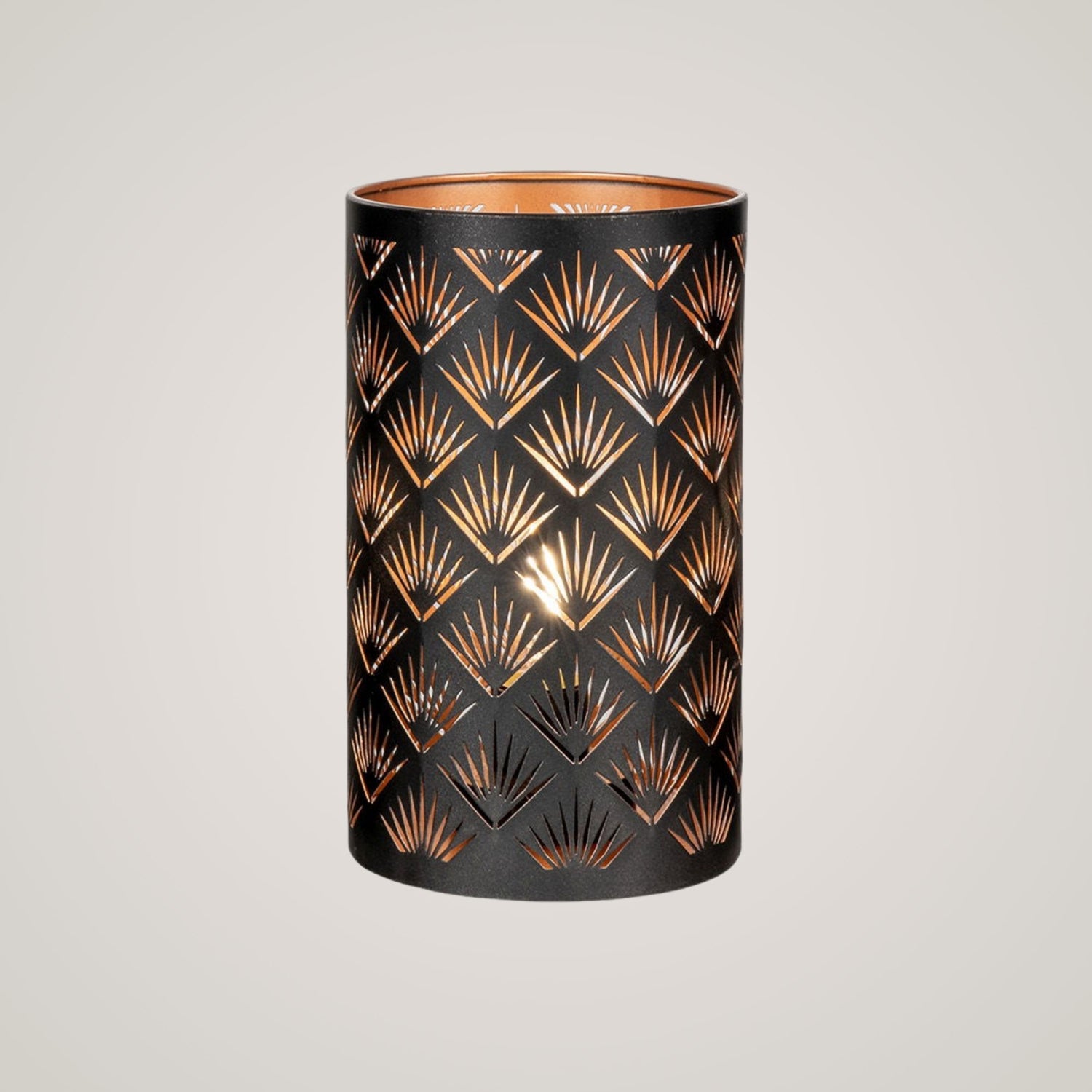 House Nordic Nata LED lyslykt palme henter inspirasjon fra naturen med sitt vakre palmemønster. Den svarte overflaten kombinert med den varme bronsefargen på innsiden gir et eksklusivt og tropisk preg.