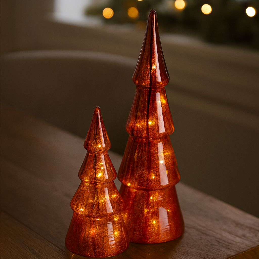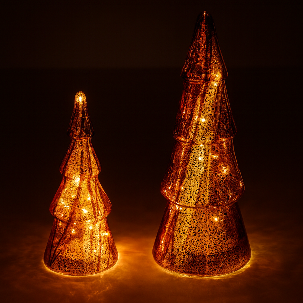 Den innebygde LED-belysningen sprer et varmt og koselig lys som gjør disse dekorative trærne til et perfekt midtpunkt i juledekorasjonen. De passer ypperlig på spisebordet, i vinduskarmen eller på en hylle
