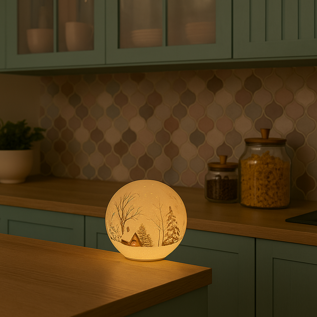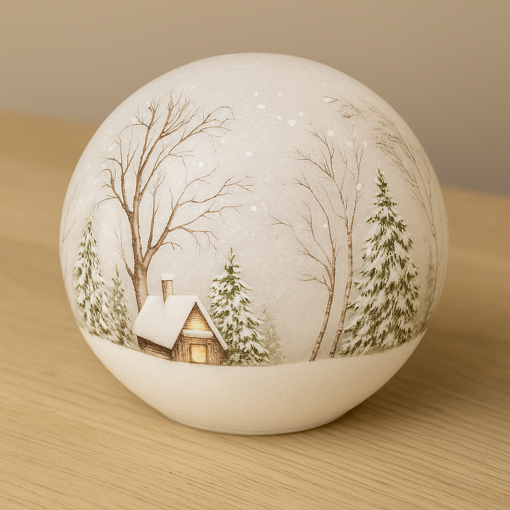 Skap en magisk vinterstemning i hjemmet med denne vakre LED lyslykten. Lykten har et stemningsfullt vinterlandskap med en koselig hytte, snødekte trær og glitrende detaljer som gir ekte julestemning. Perfekt som juledekorasjon på bord, vinduskarm eller som en del av en vakker juleutstilling.
