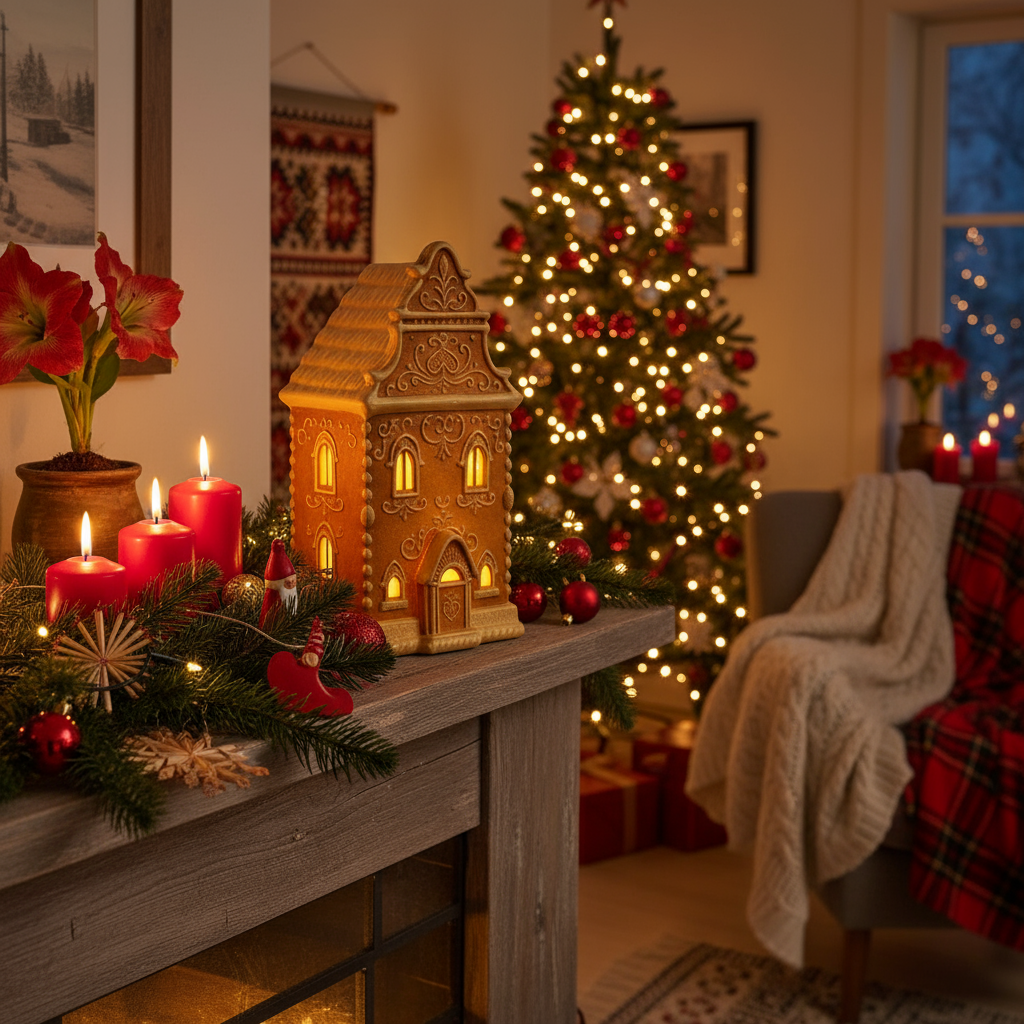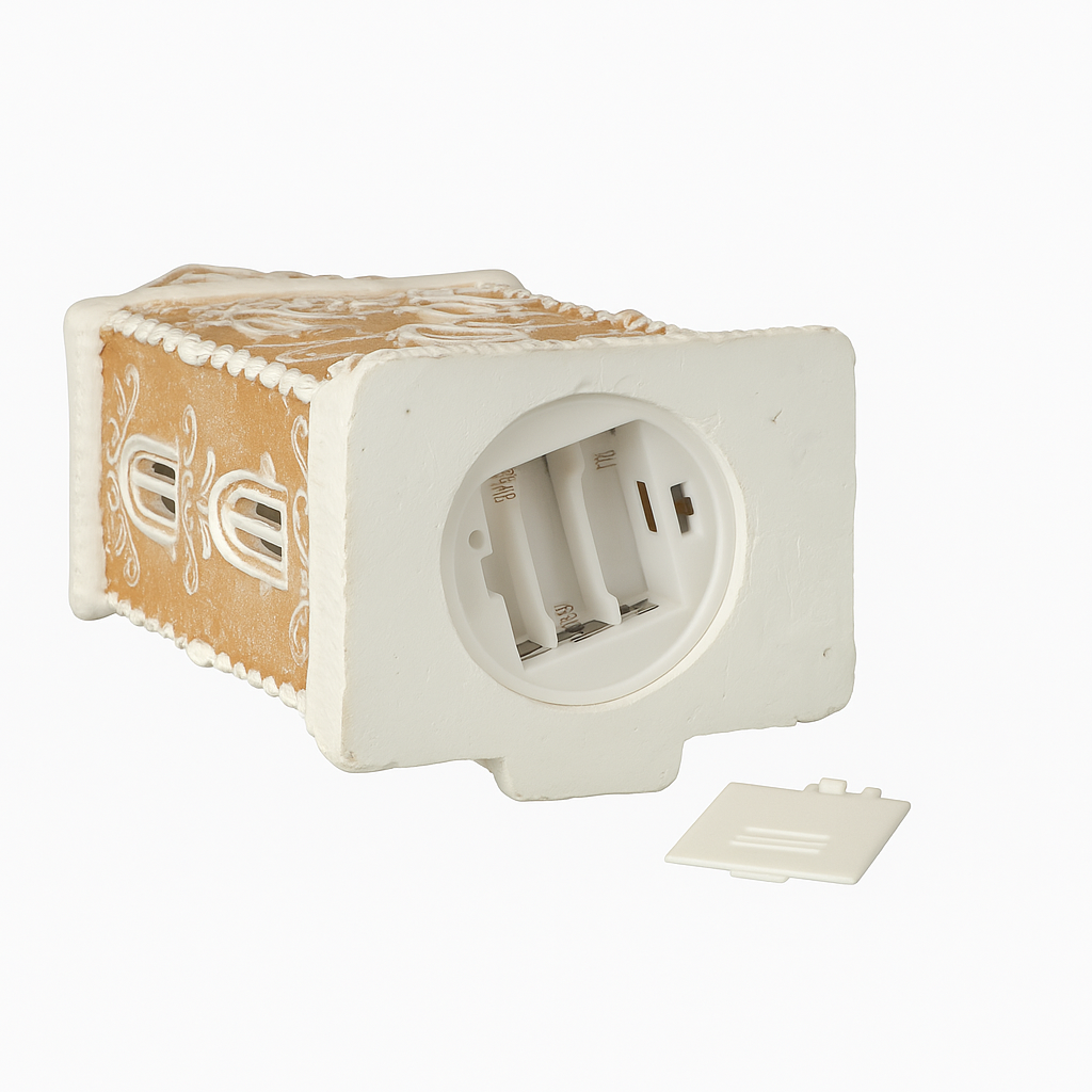 Skap en magisk julestemning hjemme med dette vakre pepperkakehuset med LED-lys. Huset er laget i detaljrik polyresin med dekorative hvite mønstre som minner om ekte glasur. Når lysene tennes, sprer det en varm og koselig glød: perfekt til vinduskarmen, på peishylla eller som midtpunkt i juledekorasjonen.