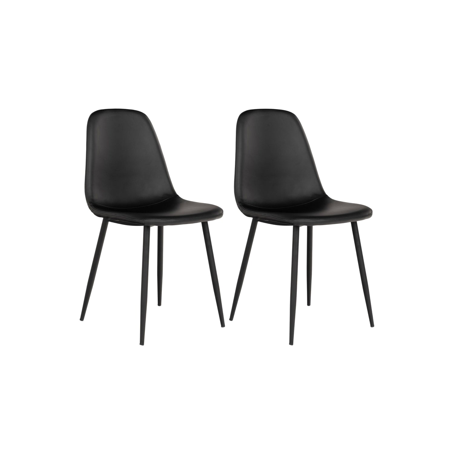 2-pk House Nordic Stockholm spisestoler i sort PU-skinn med sorte metallben – moderne skandinavisk design.