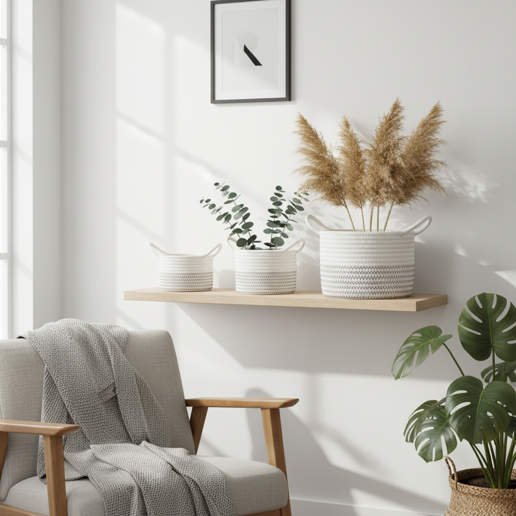 Oppbevaringskurver laget i myk bomull som holder formen sin over tid. De nøytrale fargetonene og det enkle designet passer perfekt i alle rom, enten du vil bruke dem til oppbevaring av småting på badet, barnerommet eller som dekor i stuen.
