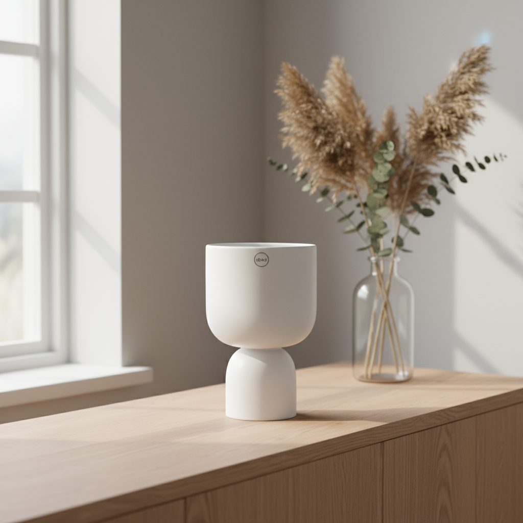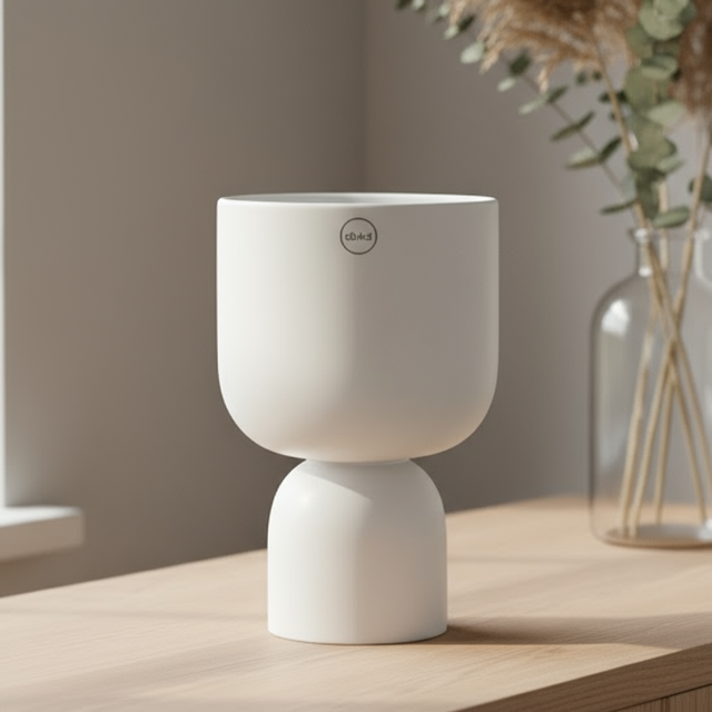 Gi interiøret ditt et moderne løft med DBKD Post Vase i hvit matt keramikk. Den stilrene vasen har en elegant, skulpturell form som kombinerer funksjon og design.