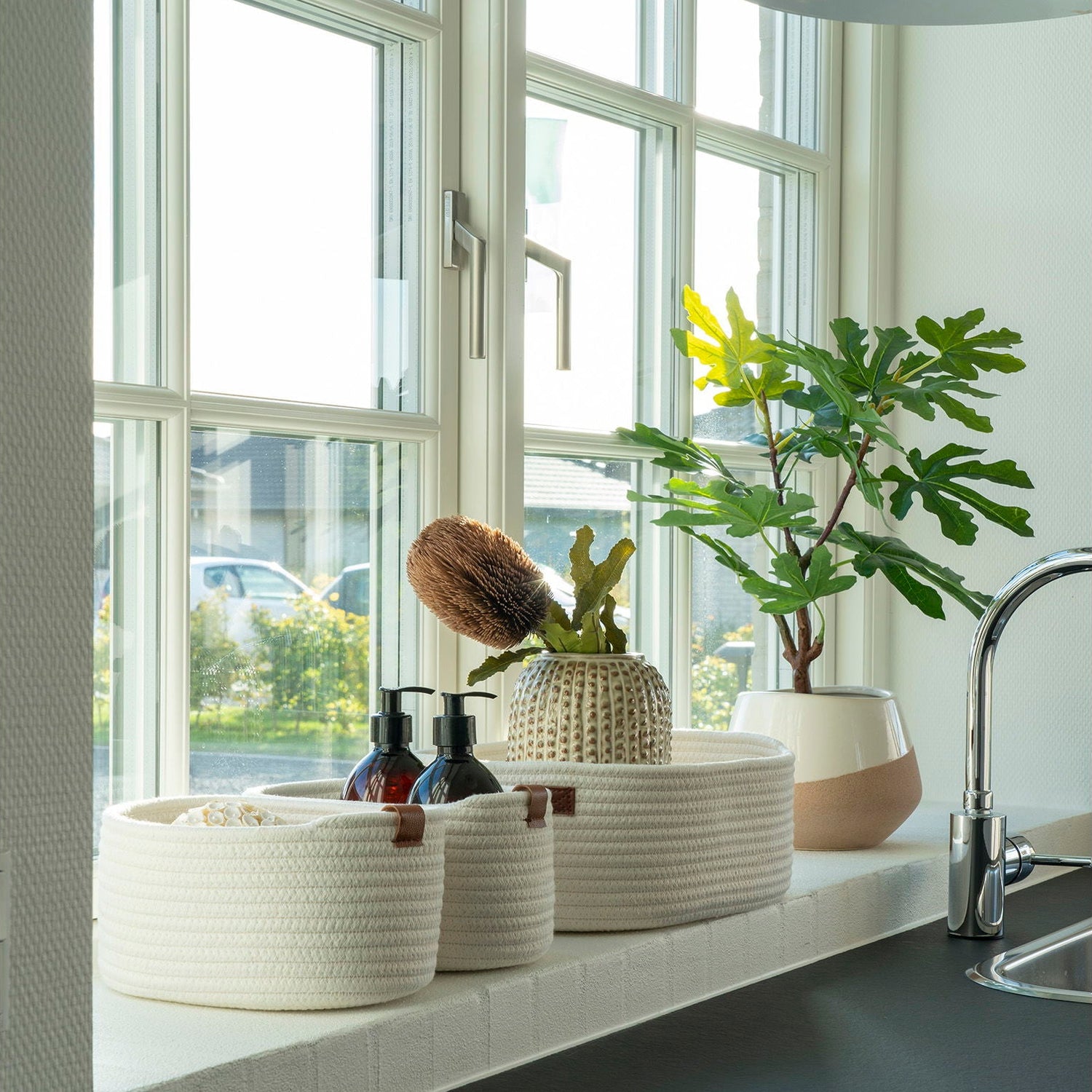 Jarana oppbevaringskurv elegant plassert i vinduskarmen. Perfekt for oppbevaring av diverse ting.