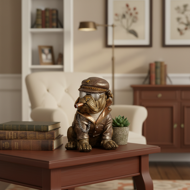 Hund bulldog med sigar er en tøff og detaljert figur som gir interiøret et hint av personlighet.