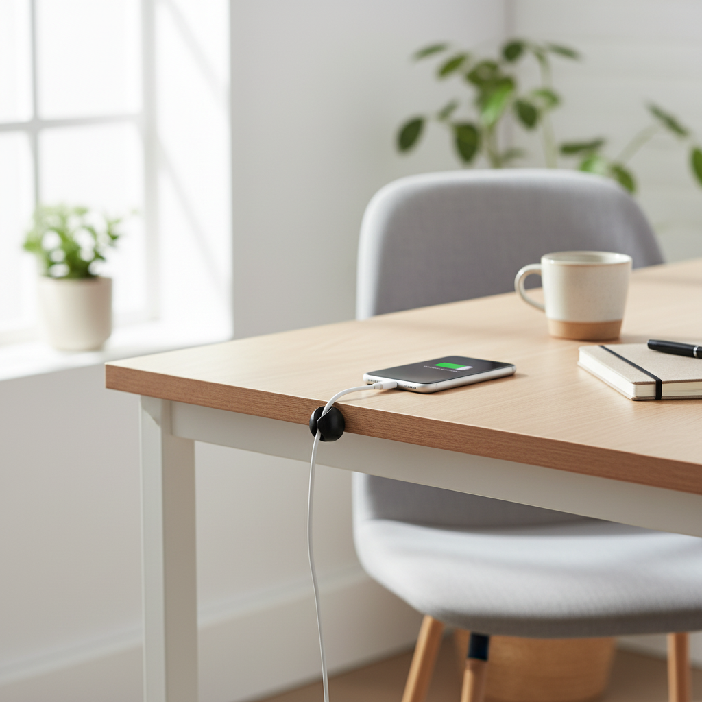 Med sin moderne og diskrete utforming passer denne vegghengte, selvklebende kabelholderen perfekt til hjem.