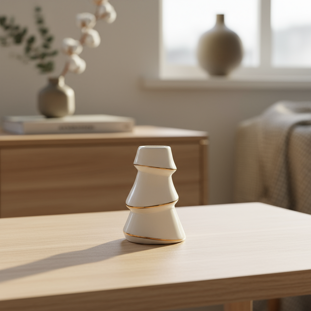 Skap stemning med en elegant lysestake formet som et juletre i hvitt med delikat gullkant. Denne dekorative lysestaken kombinerer enkel, moderne design med klassisk julepreg og passer perfekt som pynt i vinduskarmen, på spisebordet eller på en hylle.