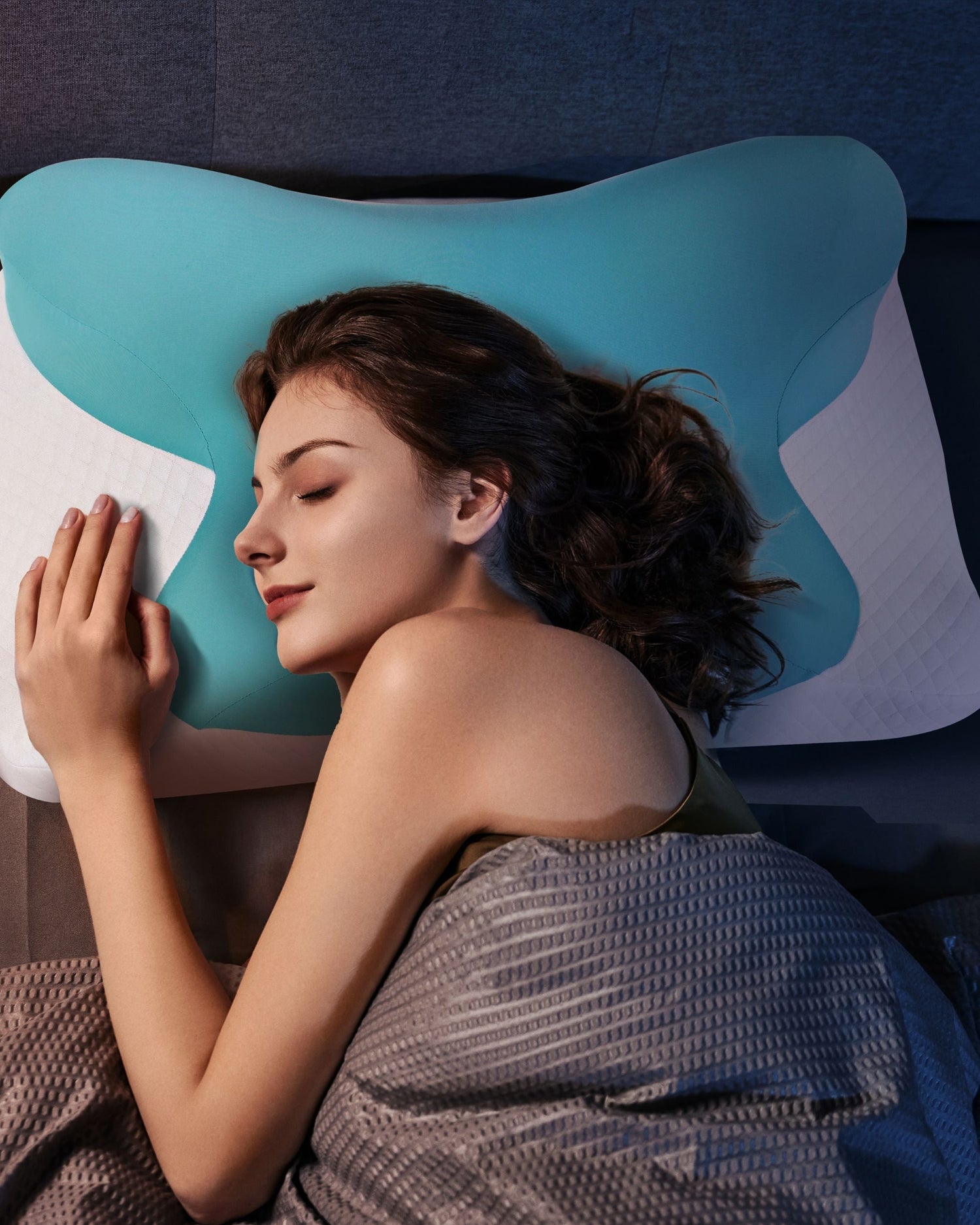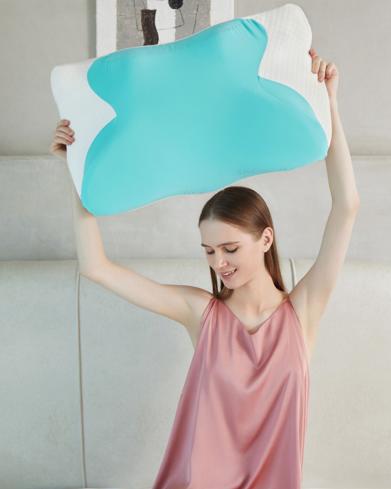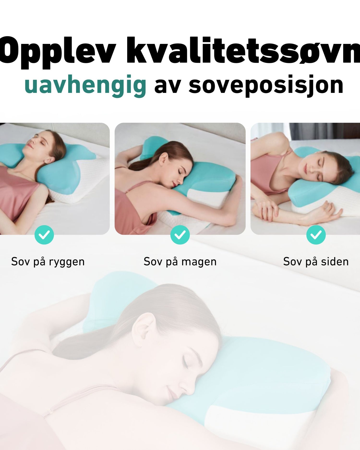 Ergonomisk utforming: Den innovative sommerfuglformen sikrer naturlig posisjonering av hode og nakke, og reduserer trykkpunkter for en mer avslappende søvn.