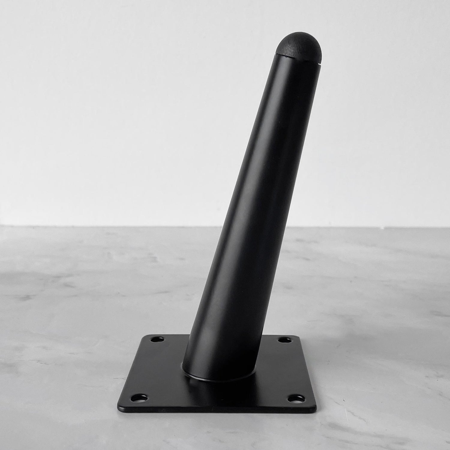 Moderne møbelben i sort metall. Forny stilen på sofaen, kommoden, eller bordet ditt med dette flotte møbelbenet i skrått design - med nye ben til ditt møbel kan du gjøre en stor forskjell på en enkel måte. Monteres enkelt med fire skruer.