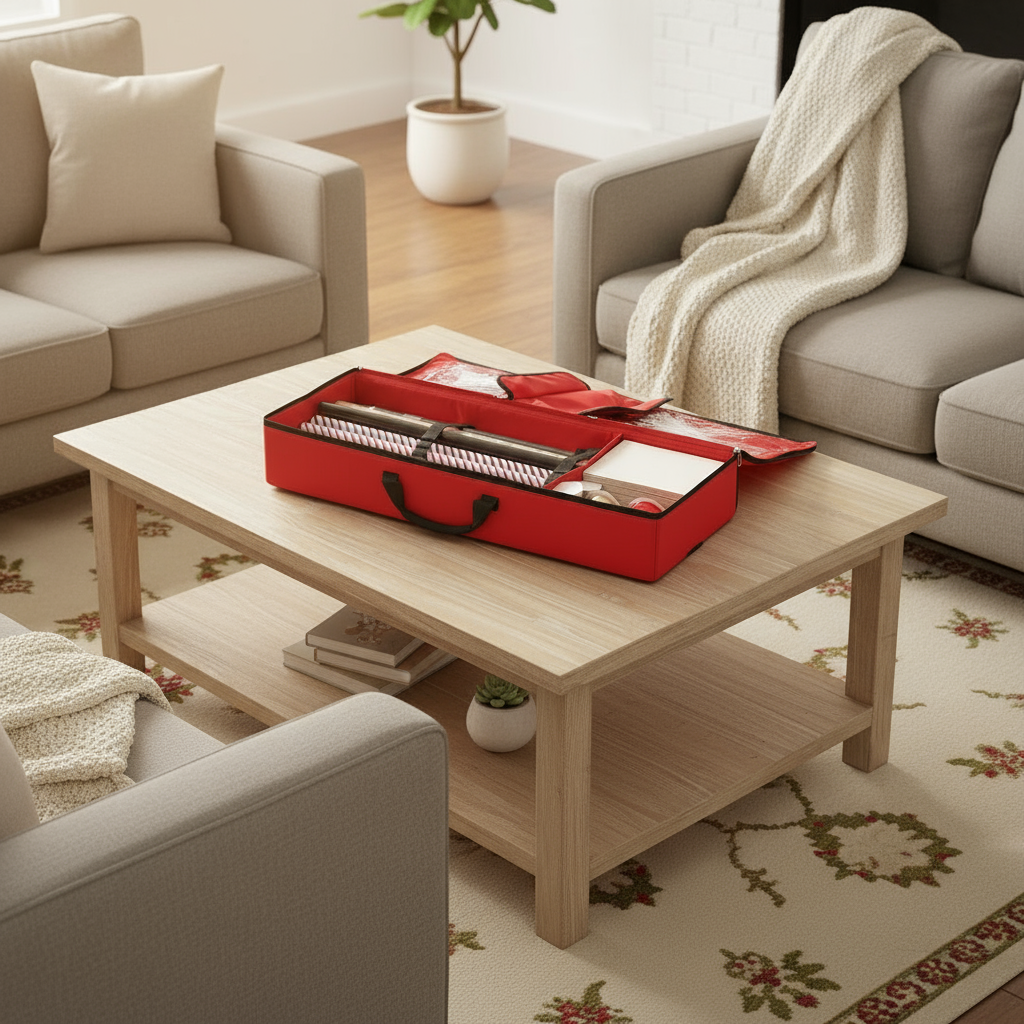 Med sitt kompakte design passer boksen perfekt i skap, under sengen eller i boden. Ideell både til juleinnpakning og hverdagsbruk.