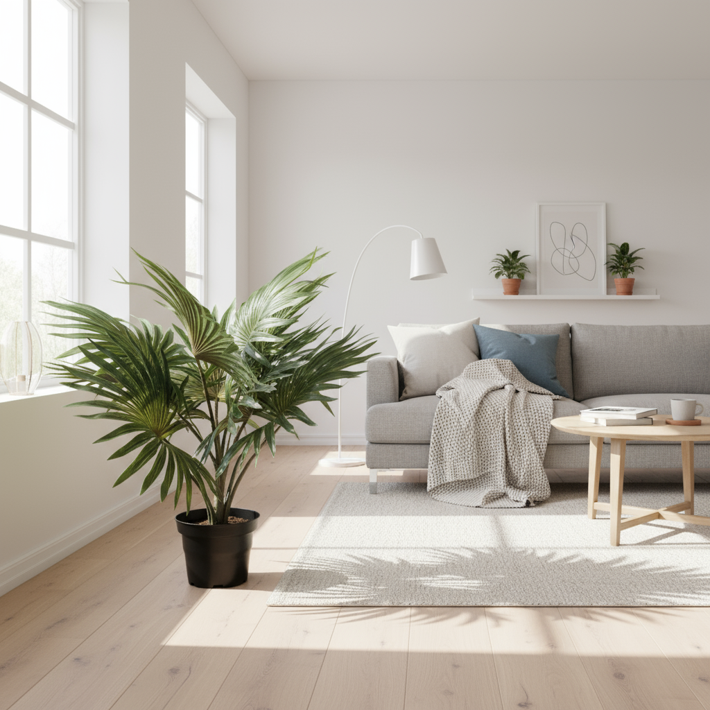 Gi hjemmet ditt et friskt og eksotisk løft med Mr. Plant Palme. Denne naturtro, kunstige palmen skaper en tropisk atmosfære. Helt uten behov for sollys eller vanning.