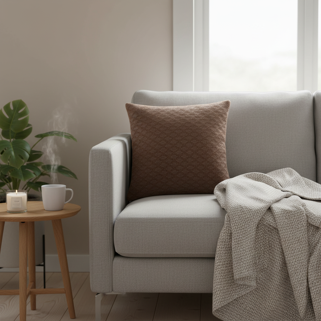 dekorativt brunt bomullstrekk til pyntepute