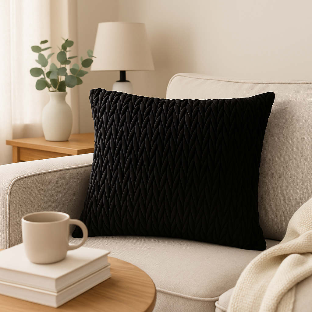 Putetrekk flettet velur sort 45 x 45 cm