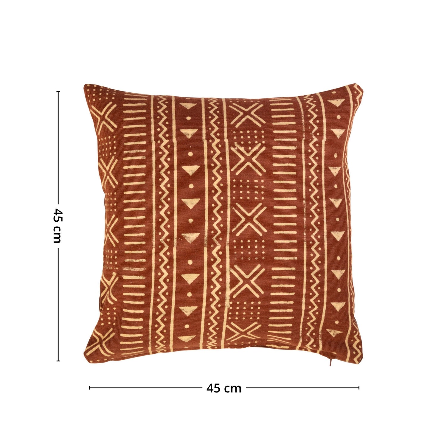Putetrekket har en dyp rødbrun rustfarge, kombinert med et elegant, gullaktig mønster som gir et varmt og sofistikert uttrykk.