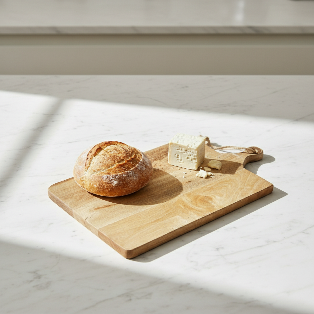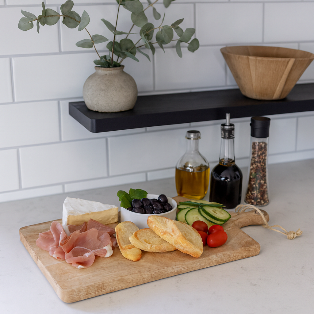 Fjølen har et naturlig og rustikt uttrykk, og den store flaten gjør den ideell til alt fra brød og grønnsaker til ost, tapas og plassbesparende.