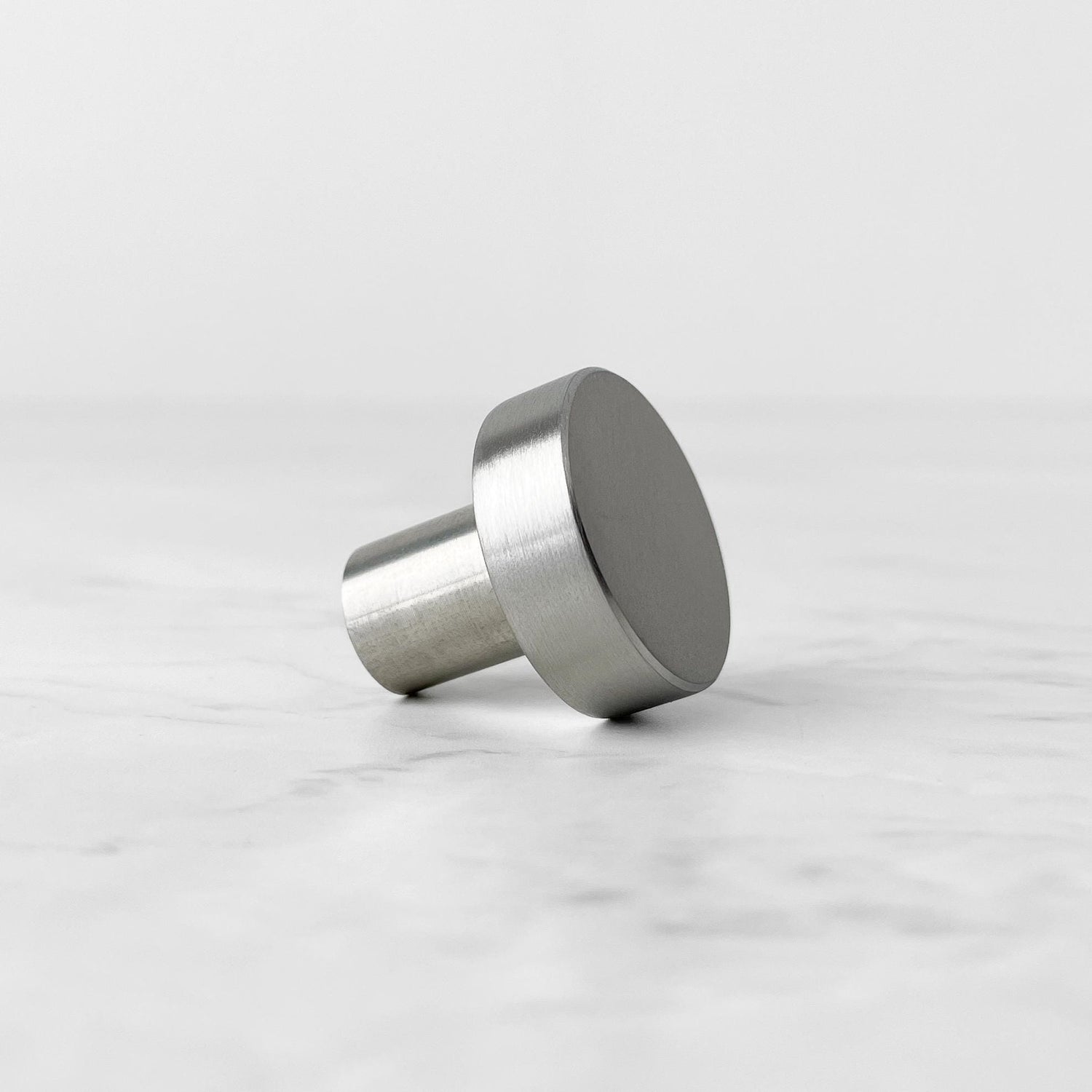 Knott beslag børstet stål med et solid design som gir et stilig og smakfult utrykk. Knotten passer like godt til møbelknott som til baderomsinnredningen din.