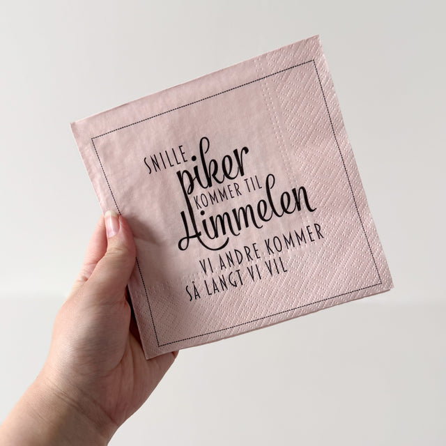 Pakke med 3-lags papirservietter til selskap, syforening eller jentekveld. De grå serviettene har en humoristisk tekst