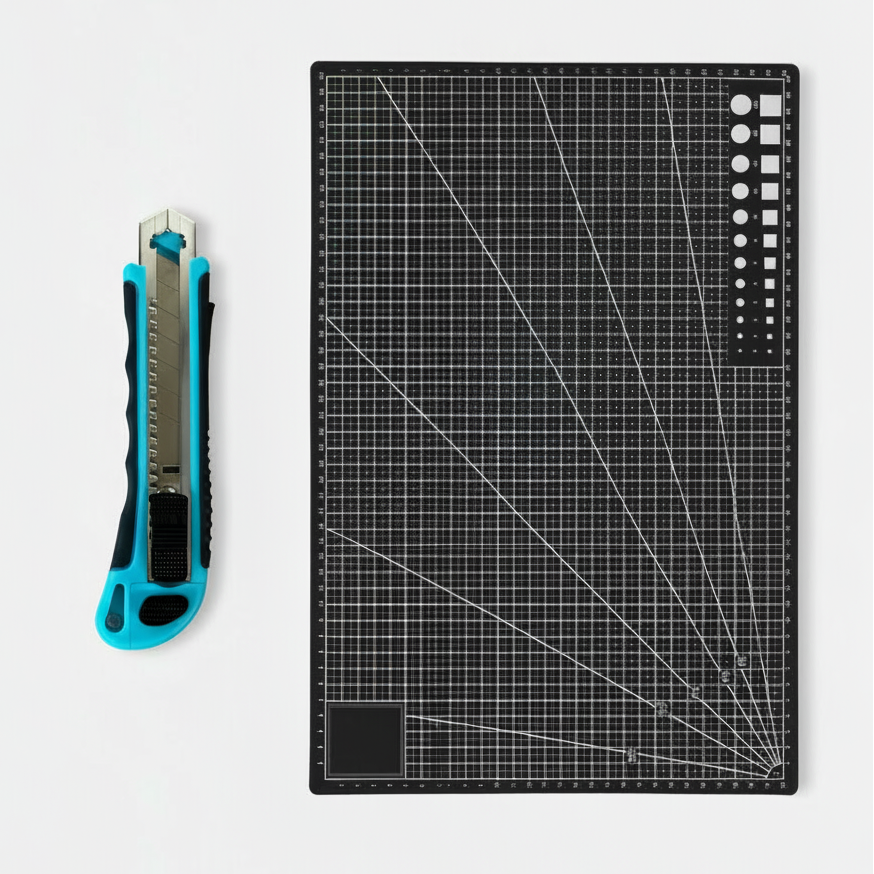 Dette settet gjør det enklere å få rette linjer og presise kutt. Skjærematten beskytter bordet og gir tydelige guider, og utstyrskniven gir rene kutt når du jobber med alt fra kontaktplast til papp og papir. Fint både til små prosjekter hjemme og mer regelmessig hobbybruk.