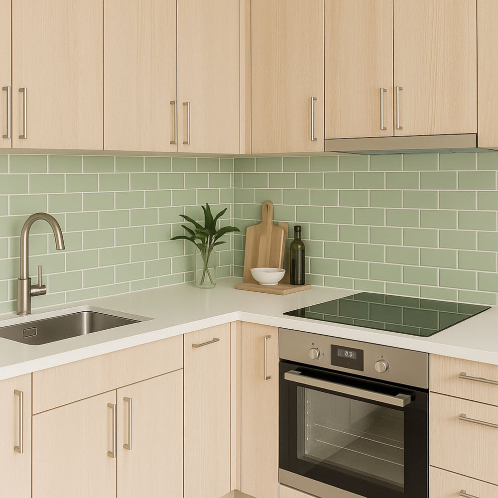Gi kjøkkenet eller badet en moderne oppgradering med Subway selvklebende fliser i sage green. Disse flisene etterligner klassiske subway-fliser og kommer i en lys grønn nyanse med hvite fuger som skaper et friskt uttrykk. Den glansede finishen gir rommet en luksuriøs følelse. Perfekt for deg som ønsker en rask, rimelig og enkel oppussing uten håndverker.
