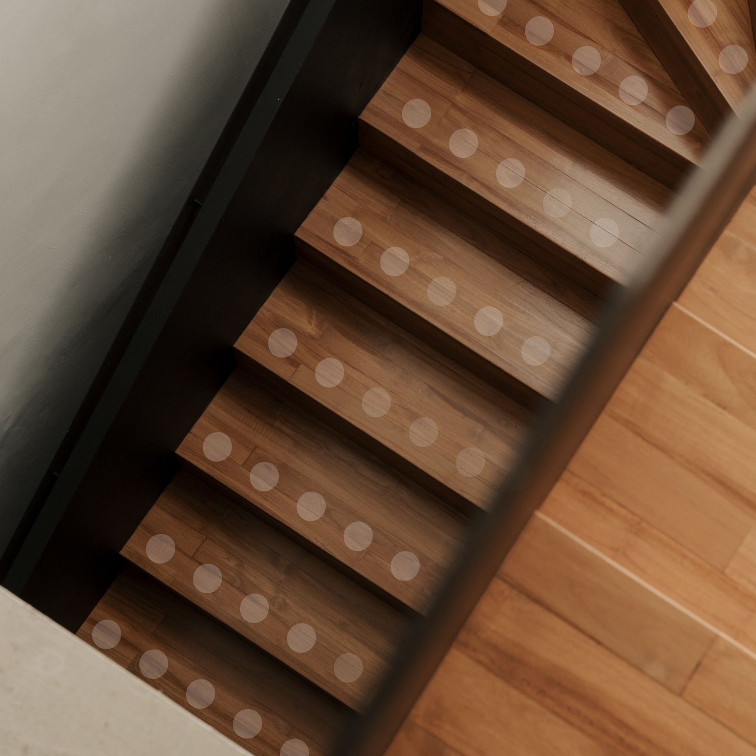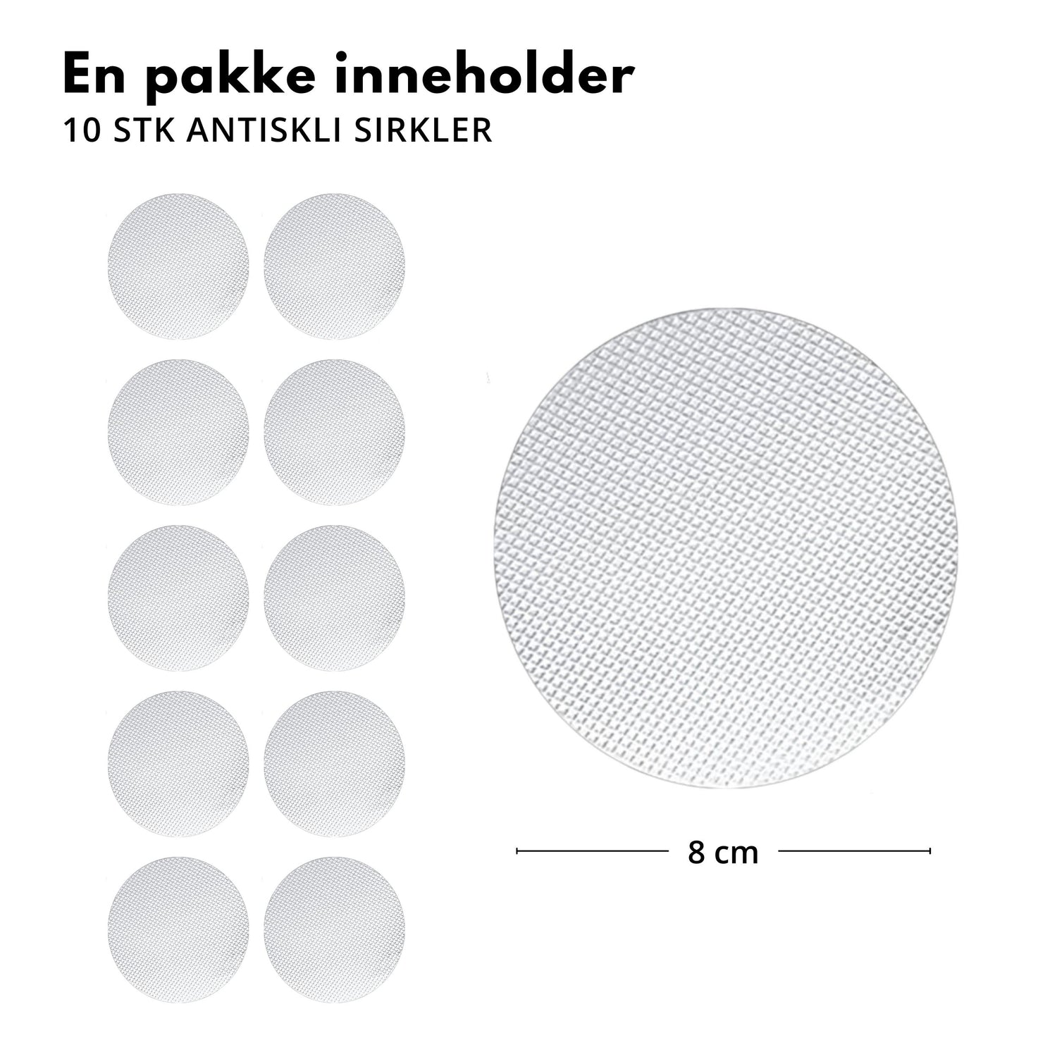 Disse små, diskrete antiskli-punktene kan enkelt festes på gulv, trapper, badekar og dusjer for ekstra trygghet mot fall og sklifare.
