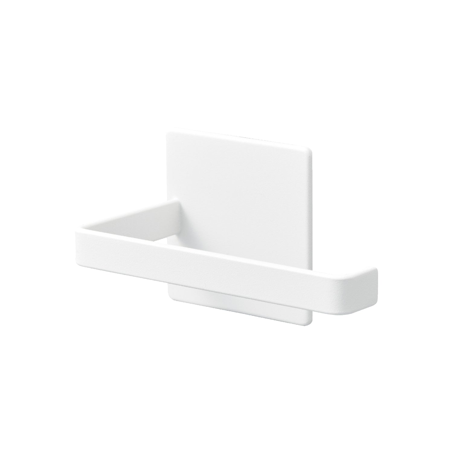 Hvit magnetisk dorullholder festet på siden av et baderomsskap.