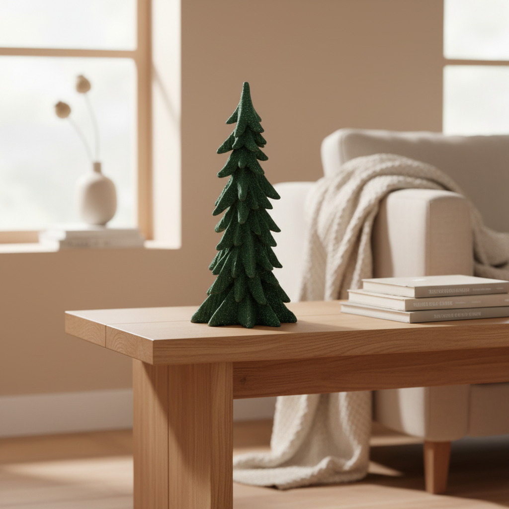 Stort dekorativt juletre grønn 27 cm med glitter - nostalgisk julepynt til bord og hylle