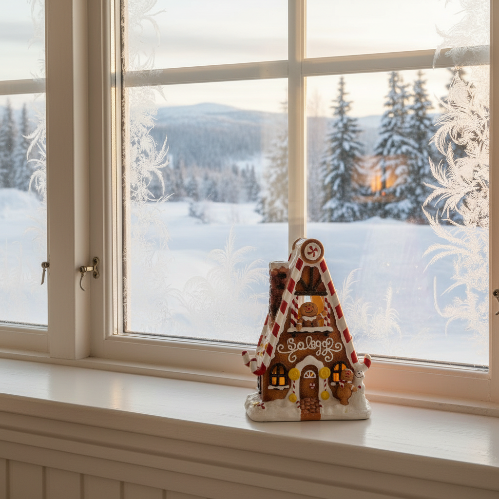 • Design: Klassisk pepperkakehus med detaljerte detaljer