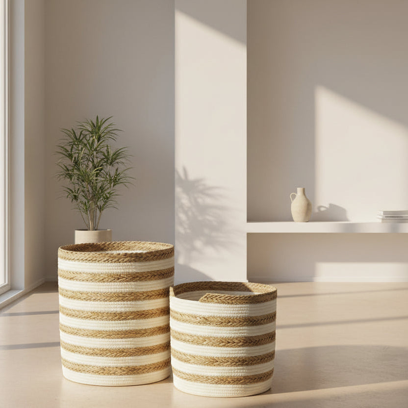2-pk Oppbevaringskurver Stripet Hvit/Natur