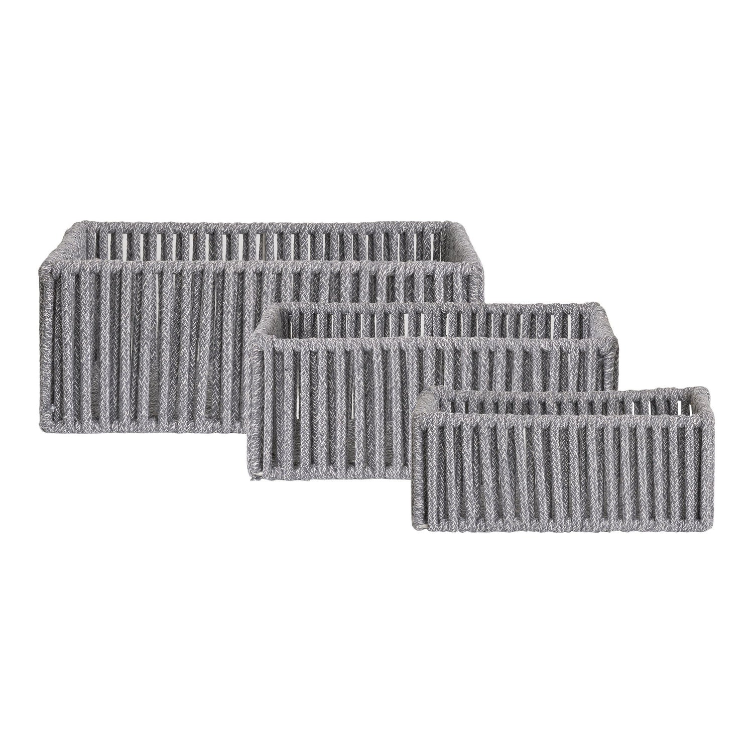 Arese kurvsett består av tre praktiske oppbevaringskurver laget i bomullstau med metallramme. Kurvene er stabile, lette og enkle å flytte, og passer godt til oppbevaring av småting i hyller, skap eller på badet.