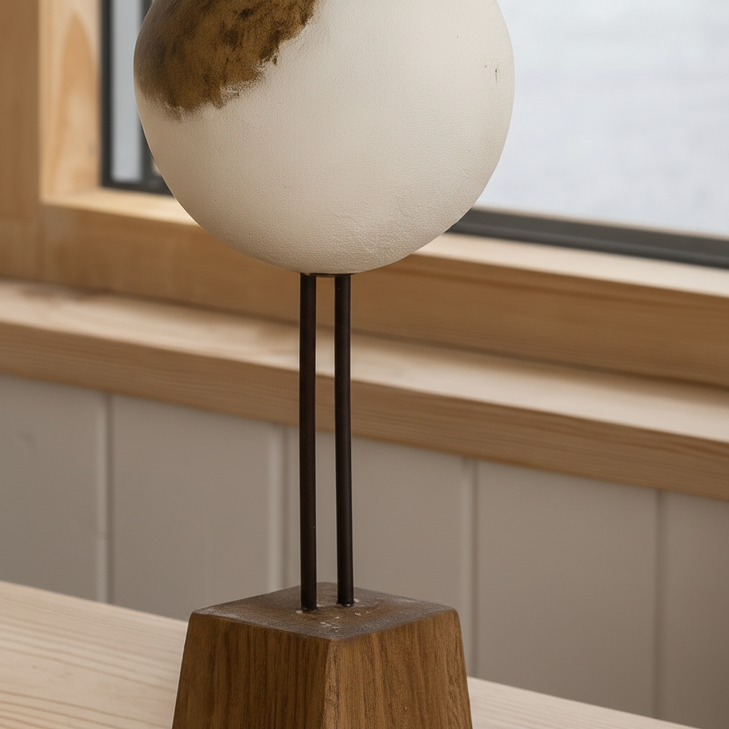 Dekorer hjemmet med en naturlig trefigur av fugl i hvit og brunt. Denne dekorfiguren er laget av tre og metall, med et minimalistisk uttrykk som passer i både moderne og rustikke interiør.