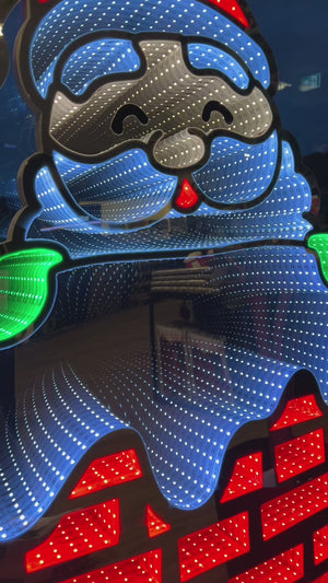 Gjør julen ekstra magisk med dette unike lysskiltet av en nisse som titter opp av pipen. Dekorasjonen kombinerer lekne julemotiver med moderne lyseffekter. Når LED-lysene tennes, skaper speilet en illusjon av uendelig dybde som gjør at nissen virkelig ser ut til å være på vei ned pipa.