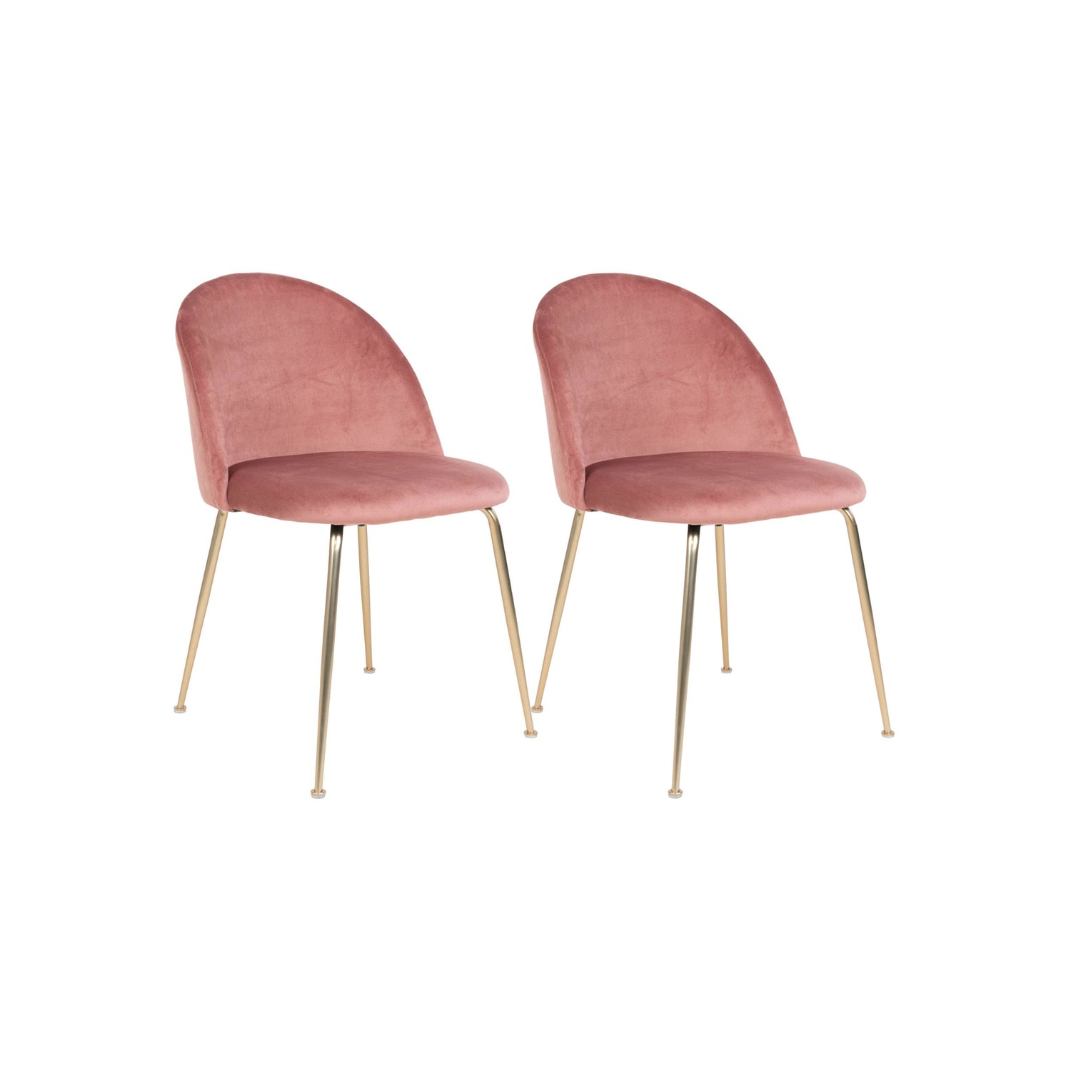 Stolene er trukket i delikat rosé fløyel sammen med slanke stolbein i messing-look som gir et varmt og eksklusivt uttrykk.