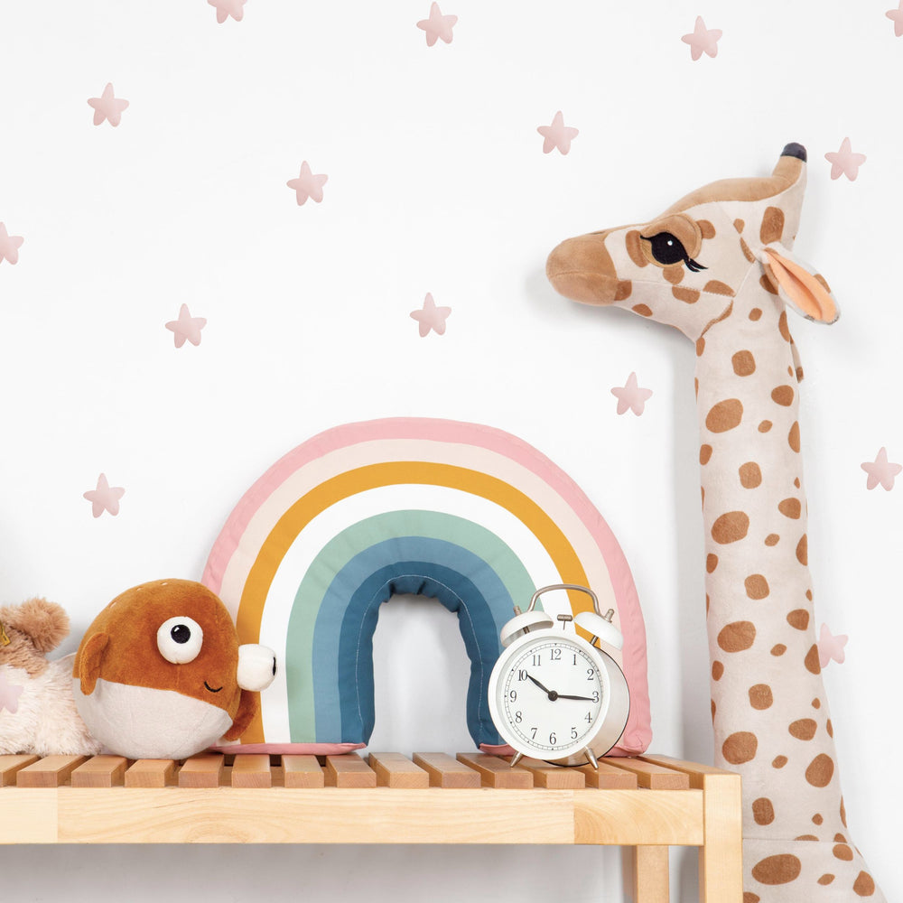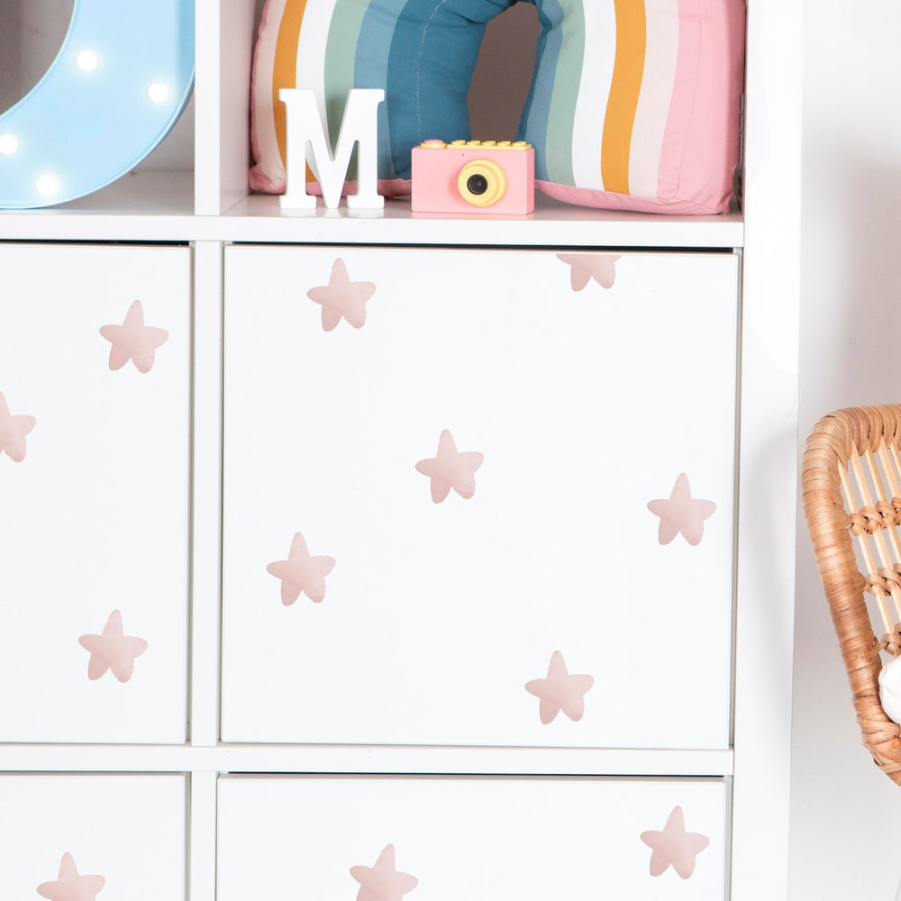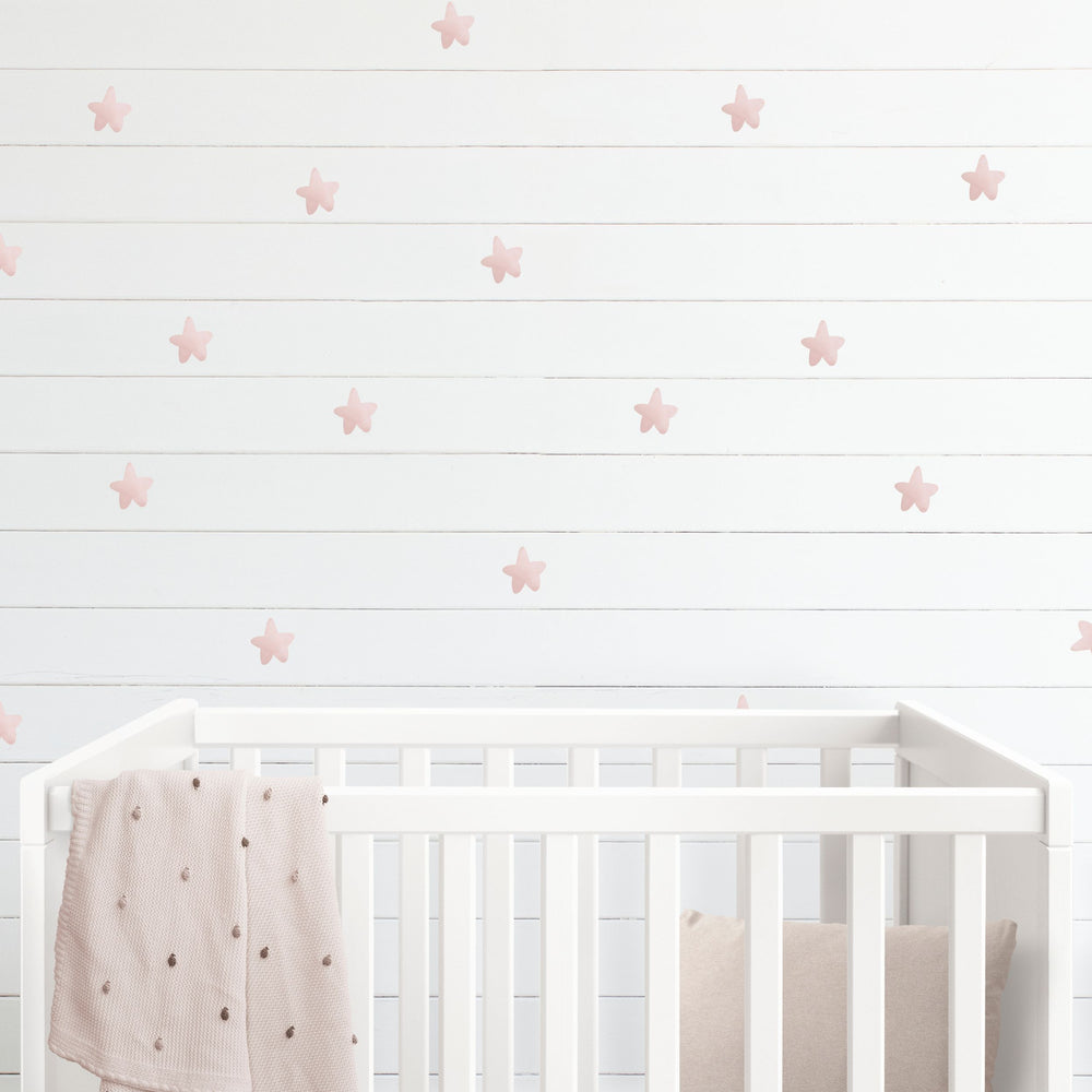 Gjør om barnerommet til en stjernehimmel med selvklebende klistremerker i rosa.  Pakken består av 25 stk identiske stjerner i en lys, dempet farge. Farge på din velg vil påvirke hvordan fargen på stickers oppleves. På mørke underlag vil stjernene virke lysere, mens på hvite eller lyse underlag vil stjerne ha en dus, mellomtonet rosafarge.