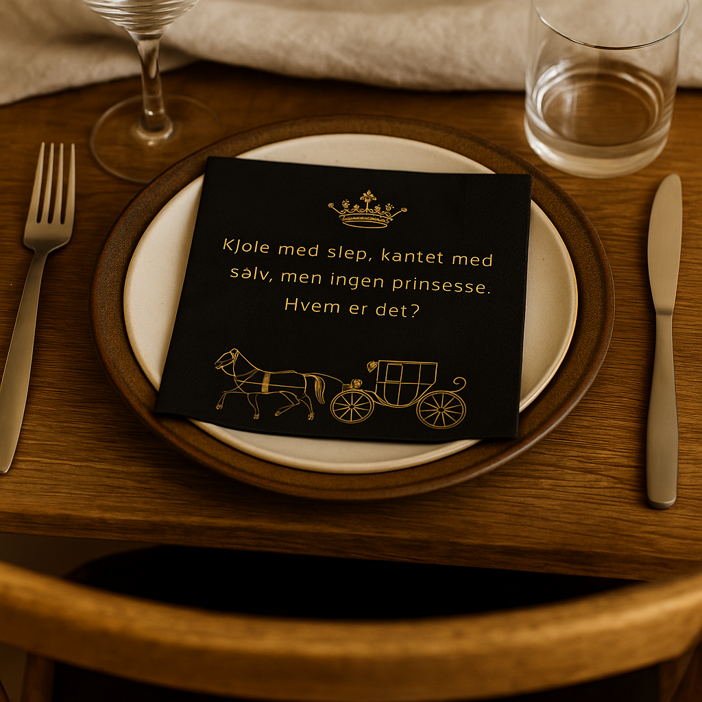 Skap en magisk stemning rundt bordet med Serviett Askepott. Disse stilfulle lunsjserviettene i sort er dekorert med elegant gulltrykk.
