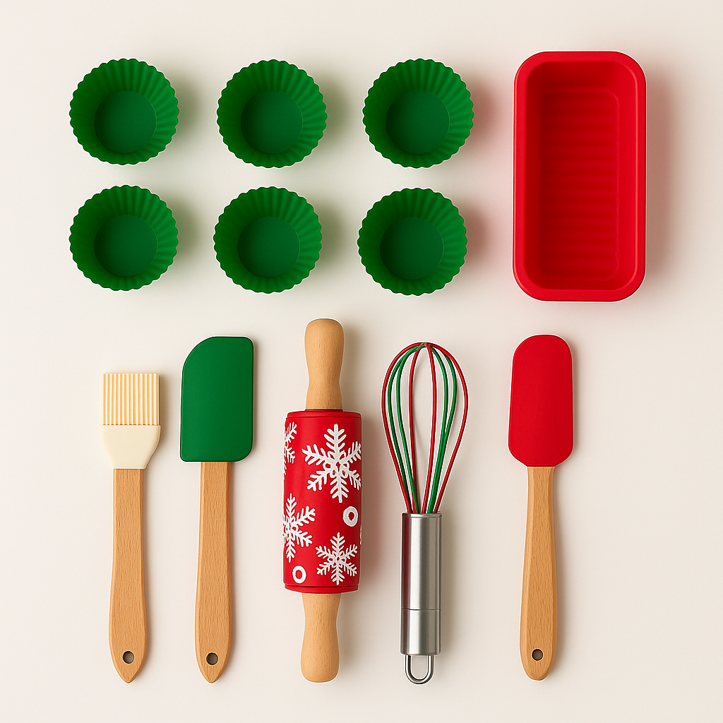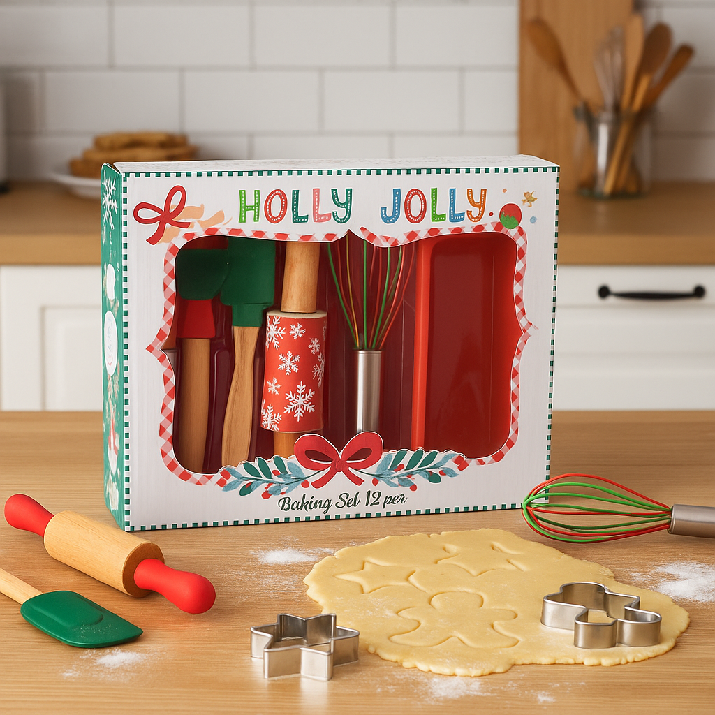 Settet inneholder alt de trenger for å lage småkaker, muffins og andre julefavoritter. Perfekt som førjulsgave, aktivitet i adventstiden eller gave til små hobbybakere.