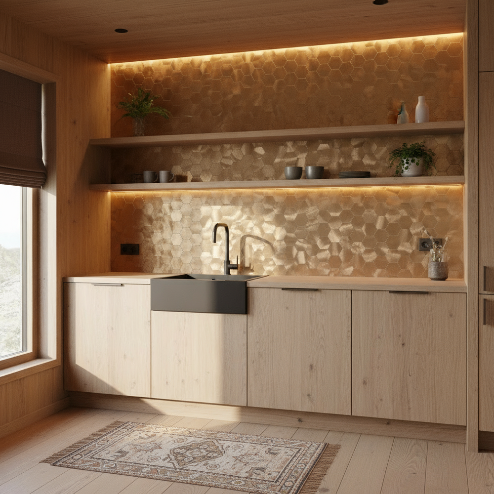 Oppgrader hjemmet med selvklebende veggfliser i hexagonmønster og børstet kobber. Perfekt som backsplash på kjøkkenet, bak baren eller på badet. Enkle å montere uten lim og fug, slitesterke og lette å rengjøre.