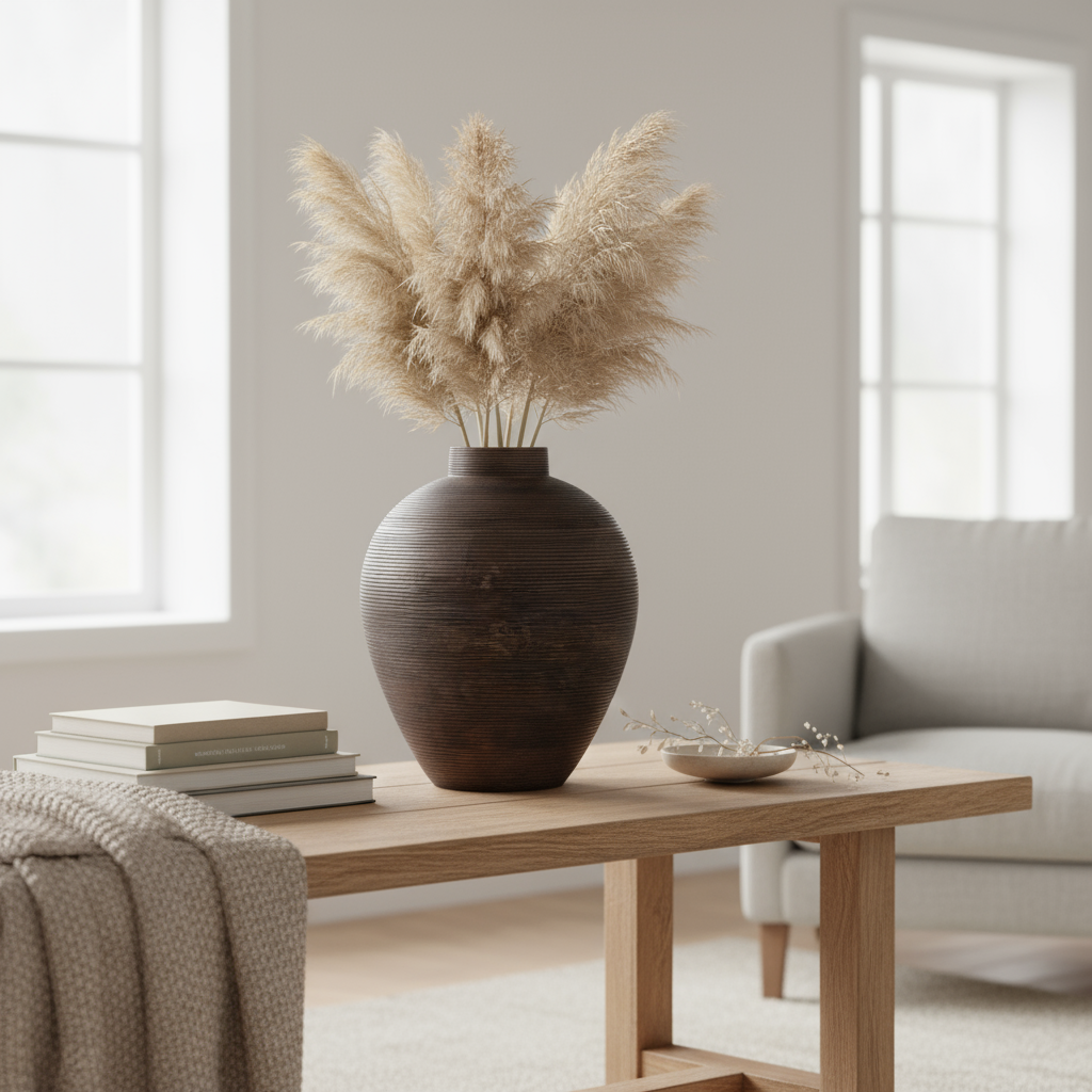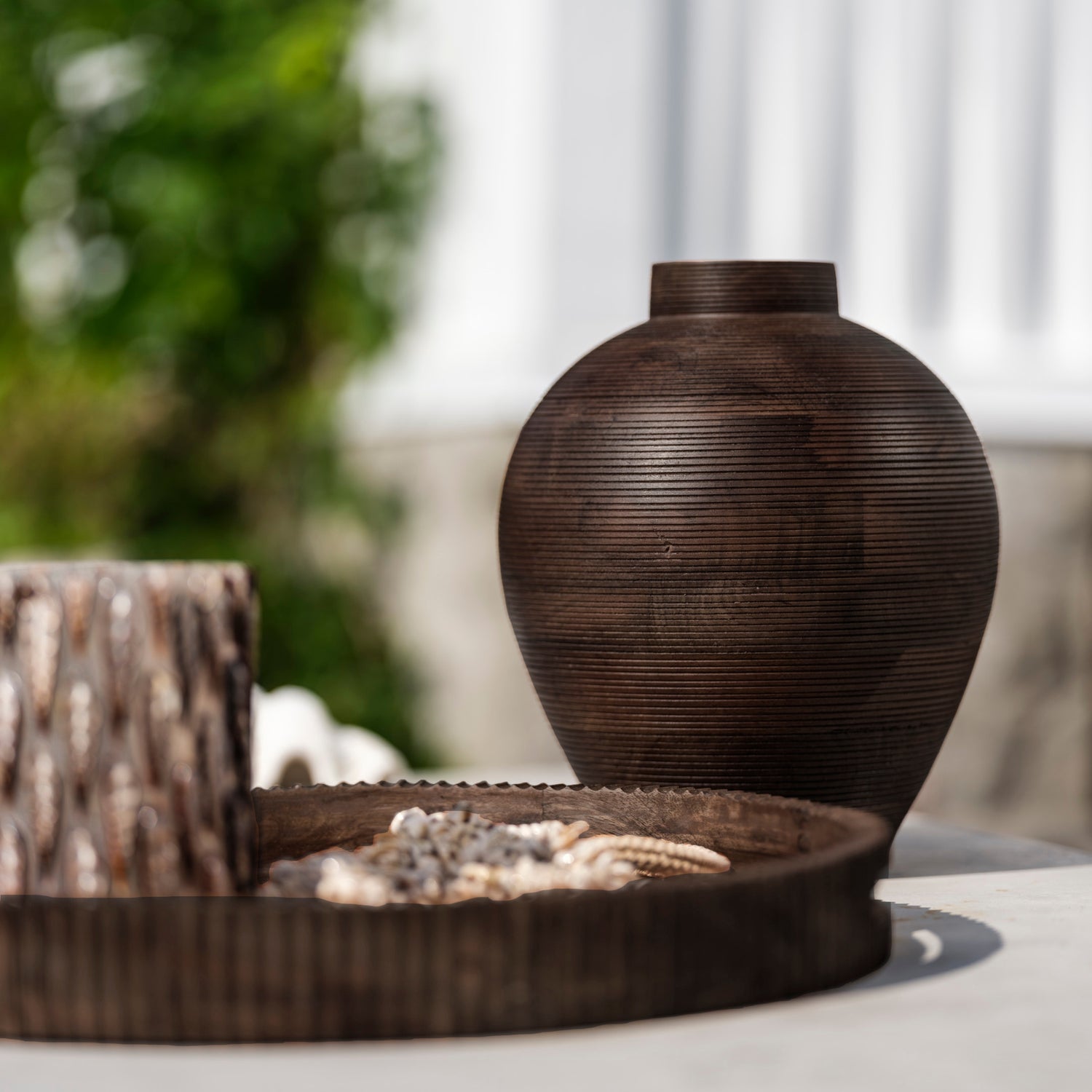 Lesotho krukke fra Halvor Bakke kombinerer naturmaterialer og klassisk design. Den brune fargen og rillete overflaten gir en eksklusiv, håndlaget følelse.