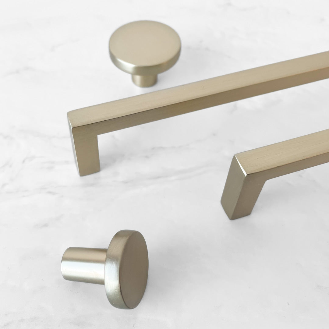 Håndtak børstet messing er håndtaket er stilrent og gir et minimalistisk utrykk med rette kanter, mens innsiden er noe avrundet for å gi et komfortabelt grep. Håndtaket er perfekt til å fornye kjøkkenskap, kommoder, nattbord, baderomsinnredning og mer.
