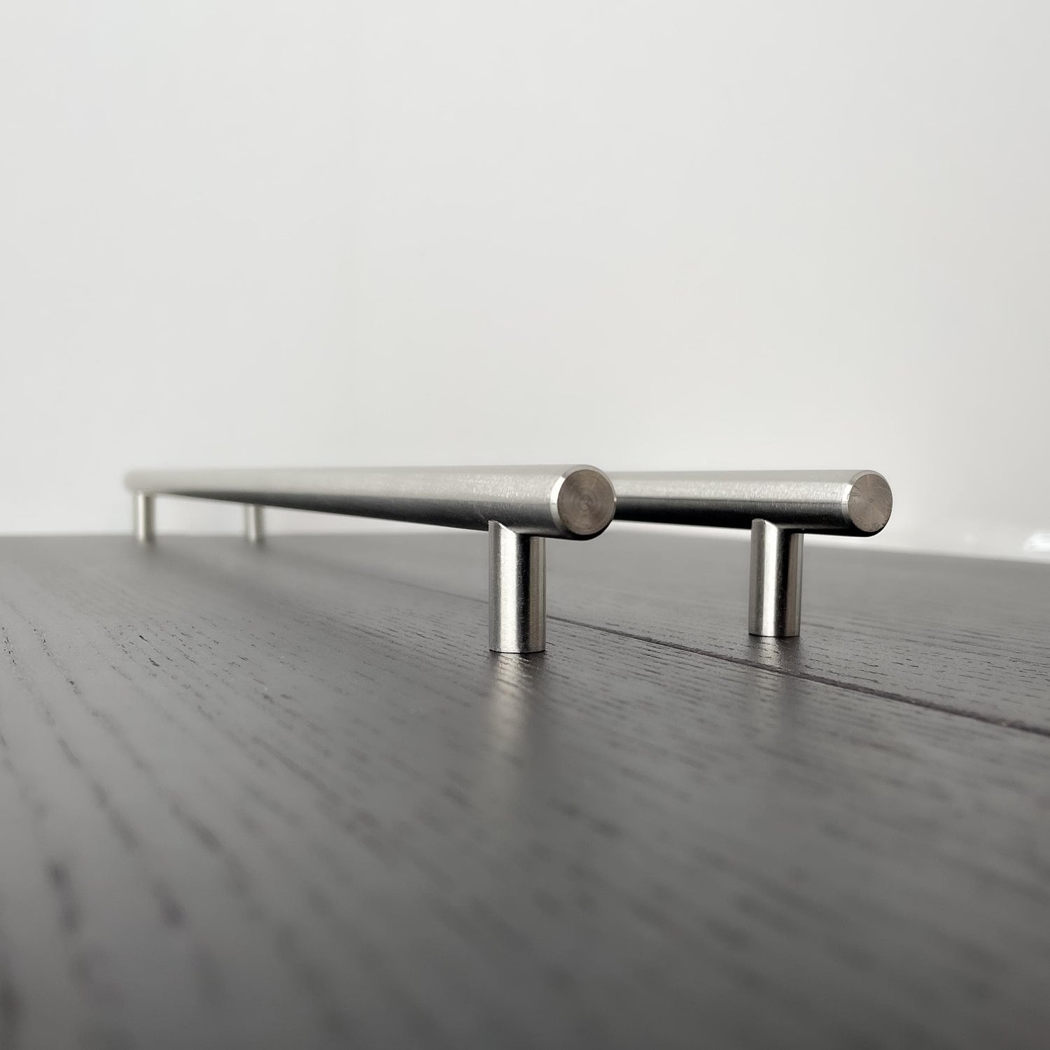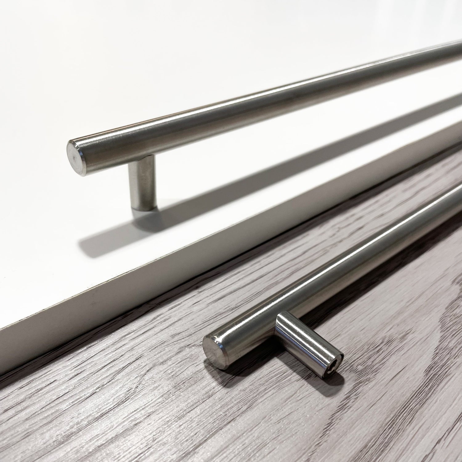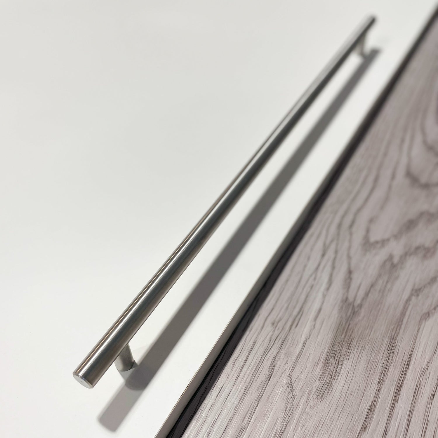 Håndtak i rustfritt stål har et avlangt og moderne utrykk med rette linjer som gir et tidløst design. Passer perfekt til kjøkkeninnredning og baderomsinnredning, og gir et fint finish på et hvert kjøkken eller bad!