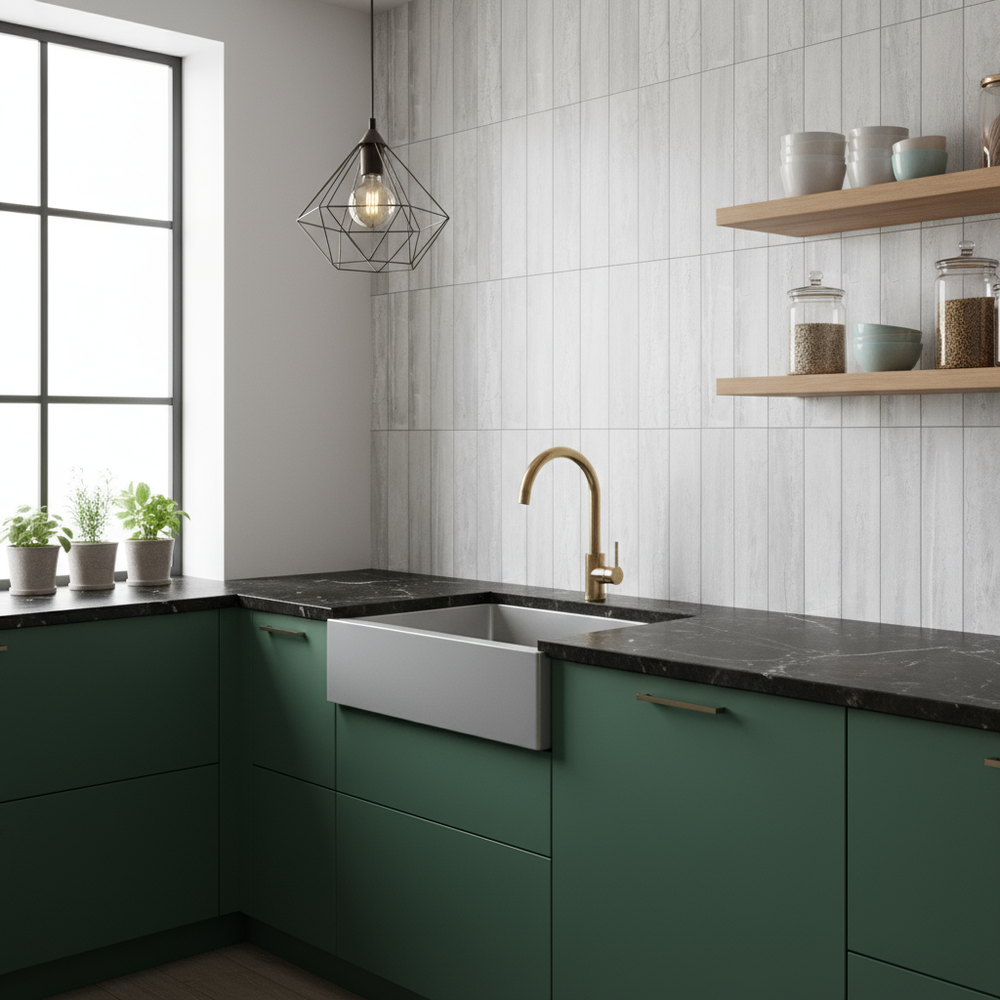 Holly-flisene er perfekte for deg som ønsker et moderne uttrykk i kjøkken, gang, vaskerom eller som en dekorativ fondvegg. Den lysegrå overflaten gir et naturlig preg som matcher både skandinavisk og industriell stil.