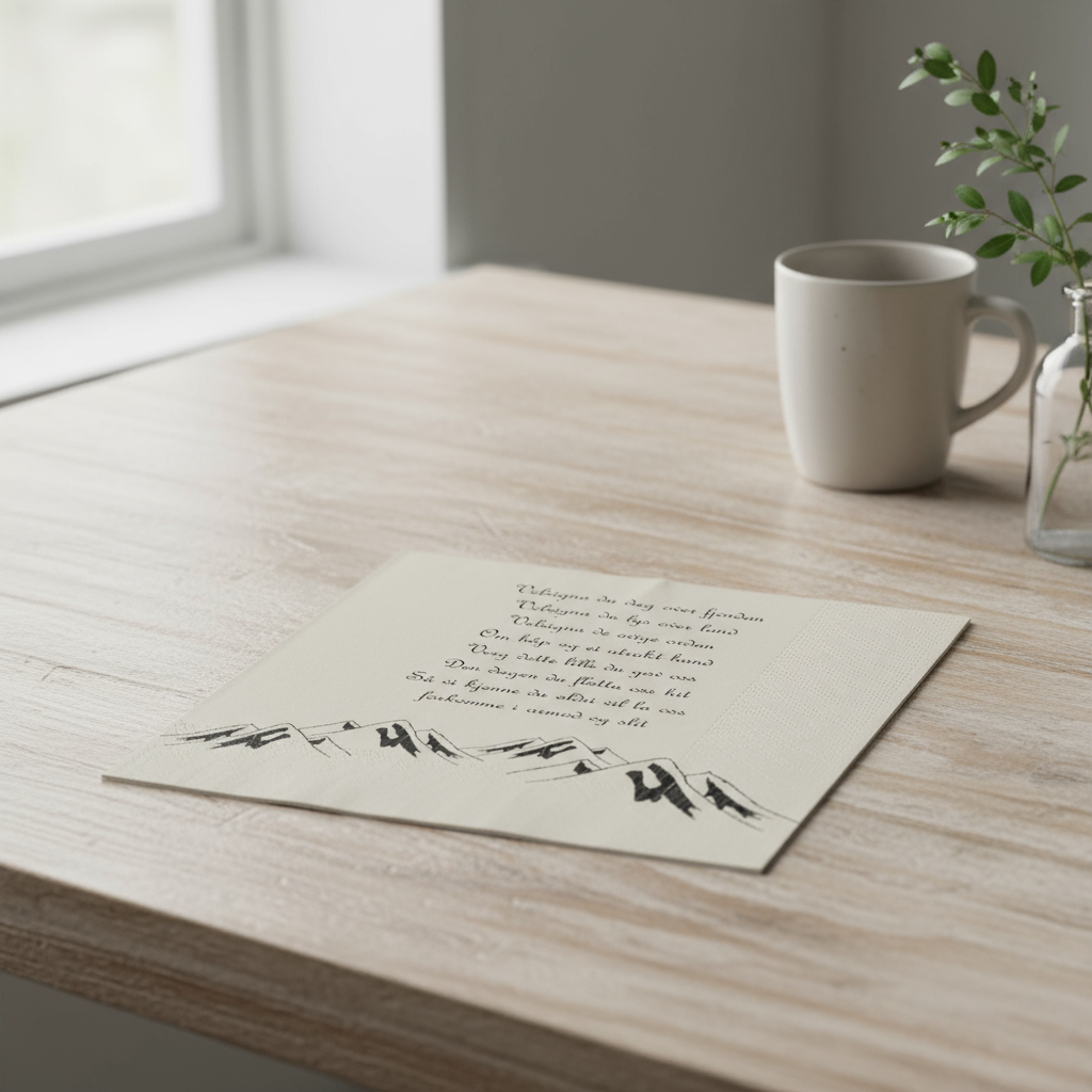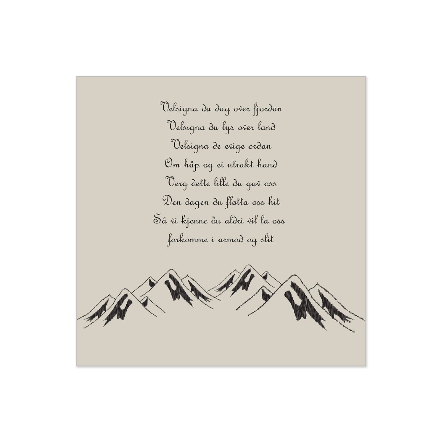 Beige servietter med utdrag fra den stemningsfulle "Nordnorsk julesalme" og illustrasjon av fjell. Serviettene er laget av 3-lags papir og kommer i en pakke med 20 stk. Perfekt til julemiddagen eller en koselig samling i adventstiden.