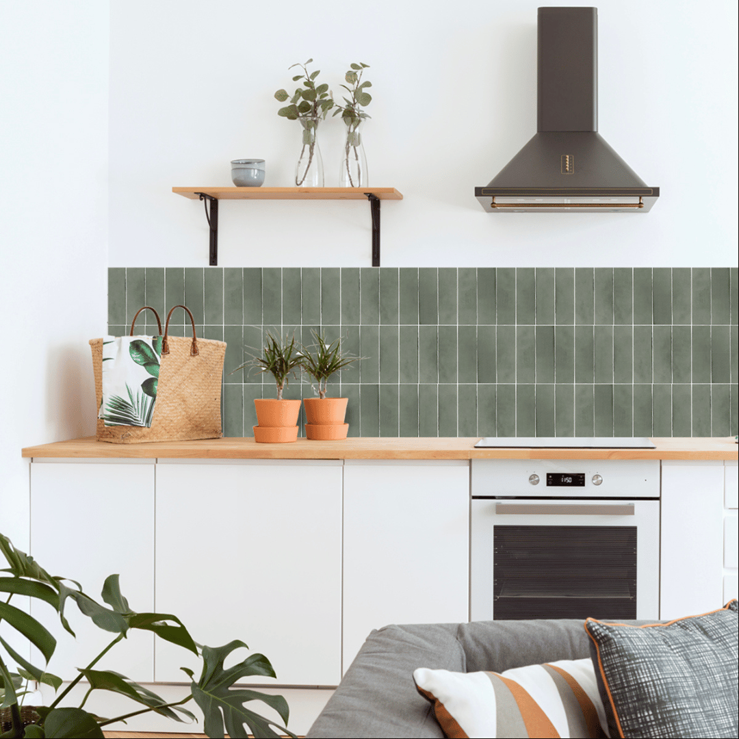 Katja Olivengrønn selvklebende fliser er en stilfull og moderne selvklebende flis inspirert av de klassiske Zellige-flisene.Flisene gir en lun og harmonisk atmosfære. Enten du oppgraderer kjøkken, bad eller møbler.