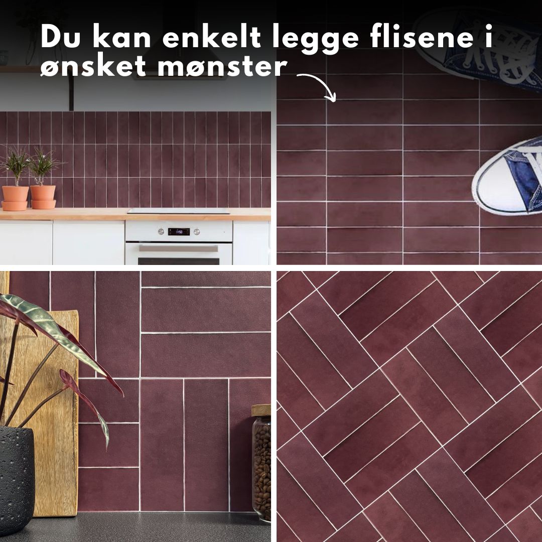 Gi hjemmet ditt et moderne og tidløst løft med Katja vinrød selvklebende fliser. Inspirert av klassiske marokkanske Zellige-fliser, kombinerer denne serien et elegant uttrykk med enkel montering – helt uten lim, fug eller spesialverktøy.
