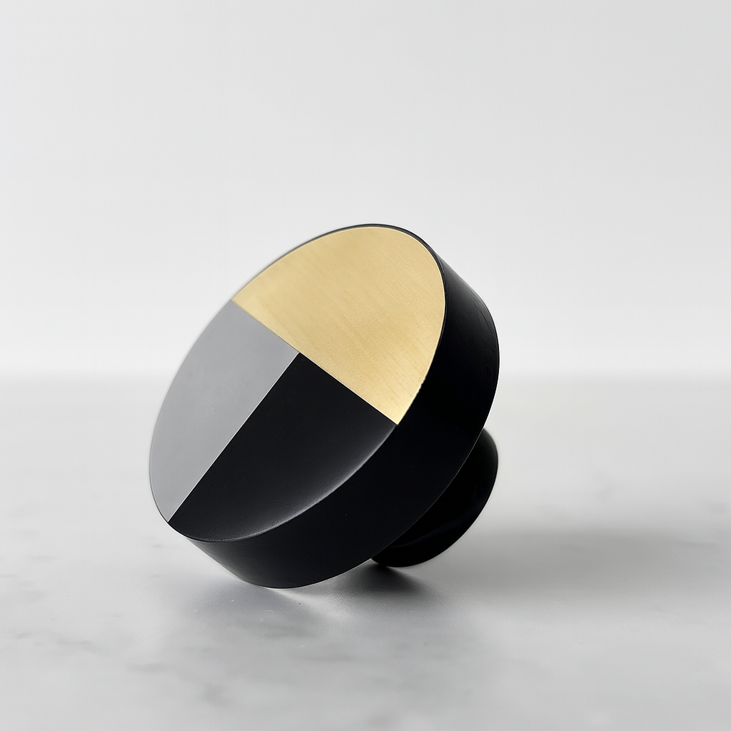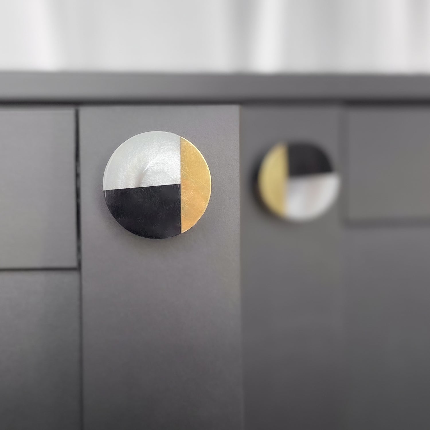 Stlfull knott i sort, hvit og gull med et moderne og unikt design. Passer perfekt til kommoden, nattbordet, garderoben eller kjøkkeninnredningen. Gi møblene din et personlig preg med denne nydelige knotten.