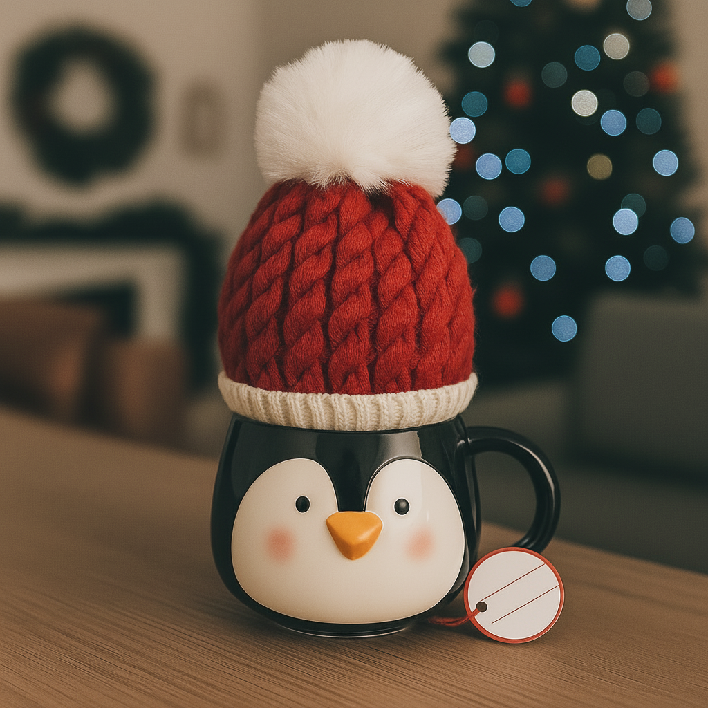 Gi en gave full av sjarm med dette kruset og tilhørende lue. Dette koselige kruset i keramikk er designet som en søt pingvin iført en varm, liten lue.