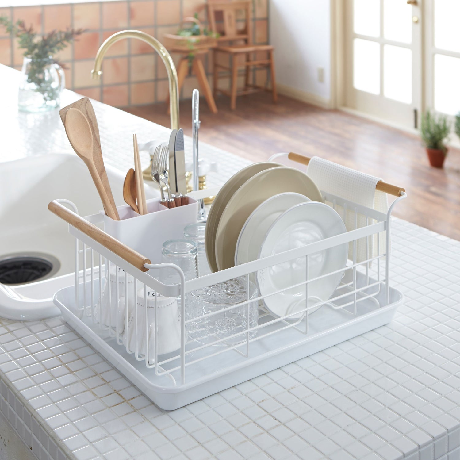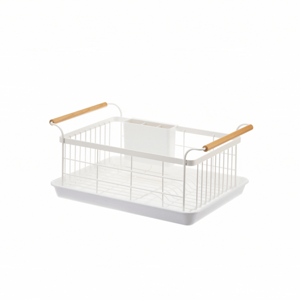 Gjør oppvasken enklere og mer stilfull med dette elegante oppvaskstativet i hvitt . Stativet har en romslig design med egne seksjoner for tallerkener, glass, bestikk og kjøkkenredskaper, noe som sikrer optimal tørking og organisering.
