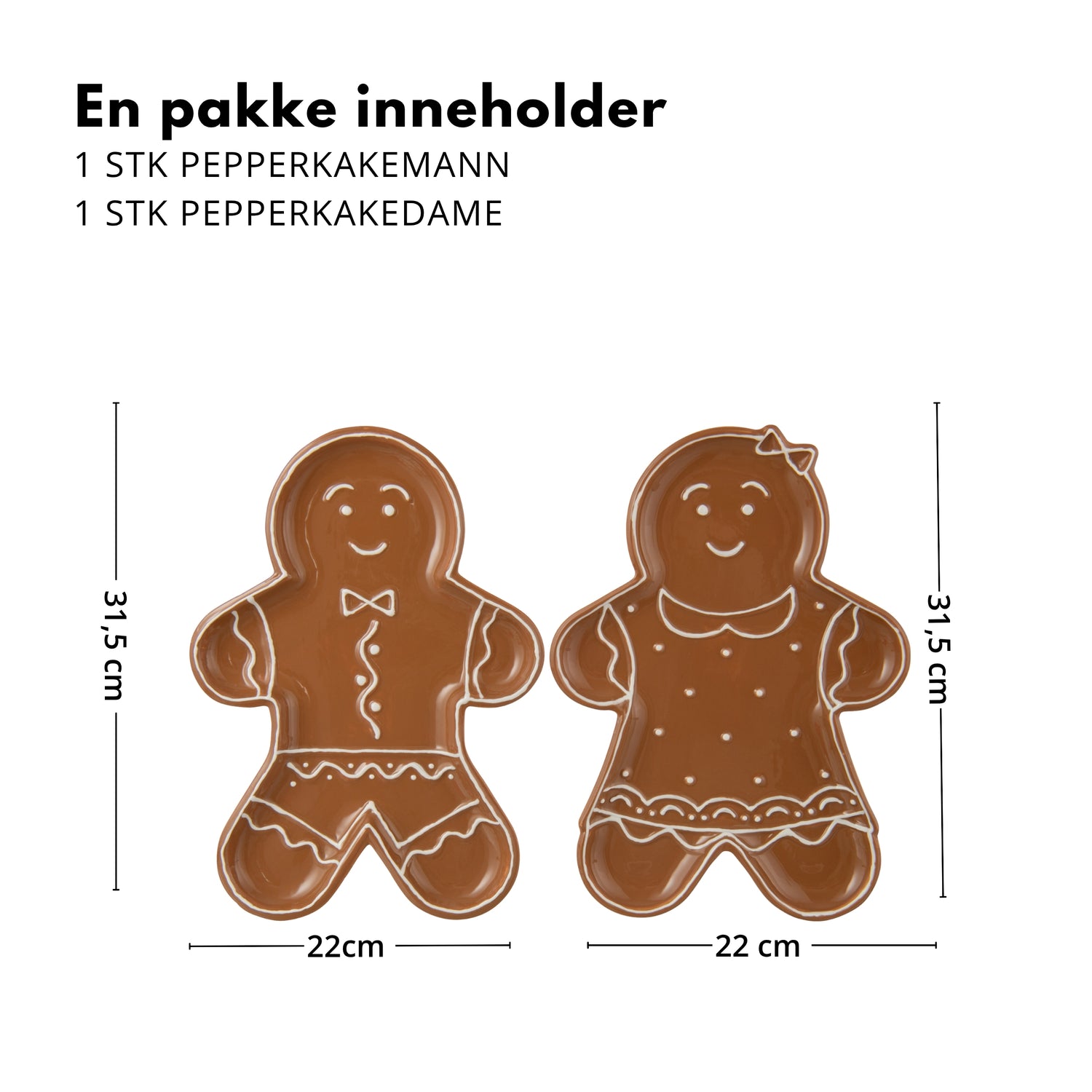 Gjør serveringen ekstra koselig med dette serveringsfatet formet som pepperkaker, i karamellbrun og hvit keramikk. Perfekt til småkaker, konfekt, snacks eller som et dekorativt innslag på julebordet.