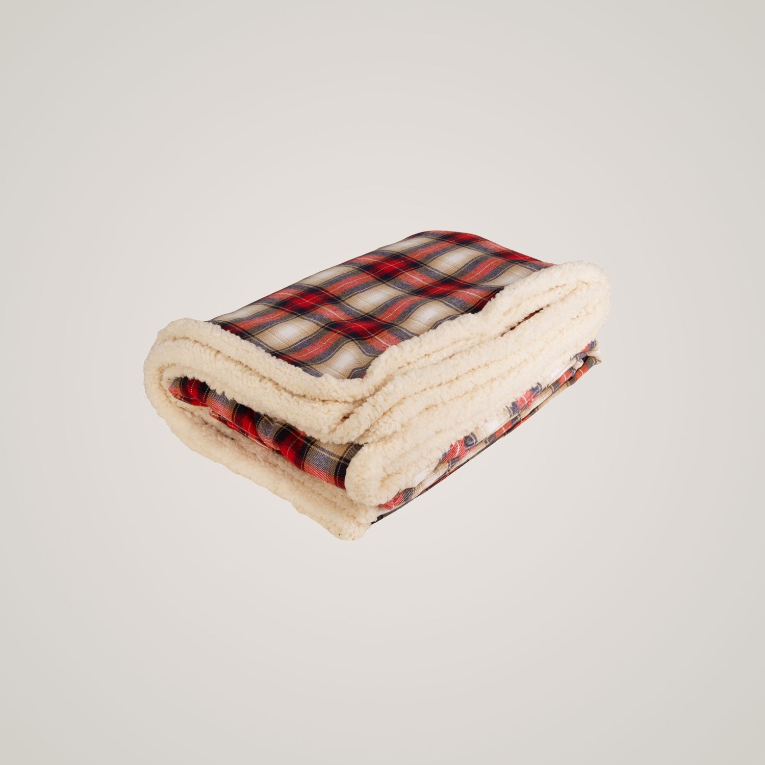 Lun og trivelig jule-pledd i rutete mønster i fargene, rød, hvit, beige og sort. Skap den perfekt julestemningen med dette fantastisk varme og gode pleddet.
