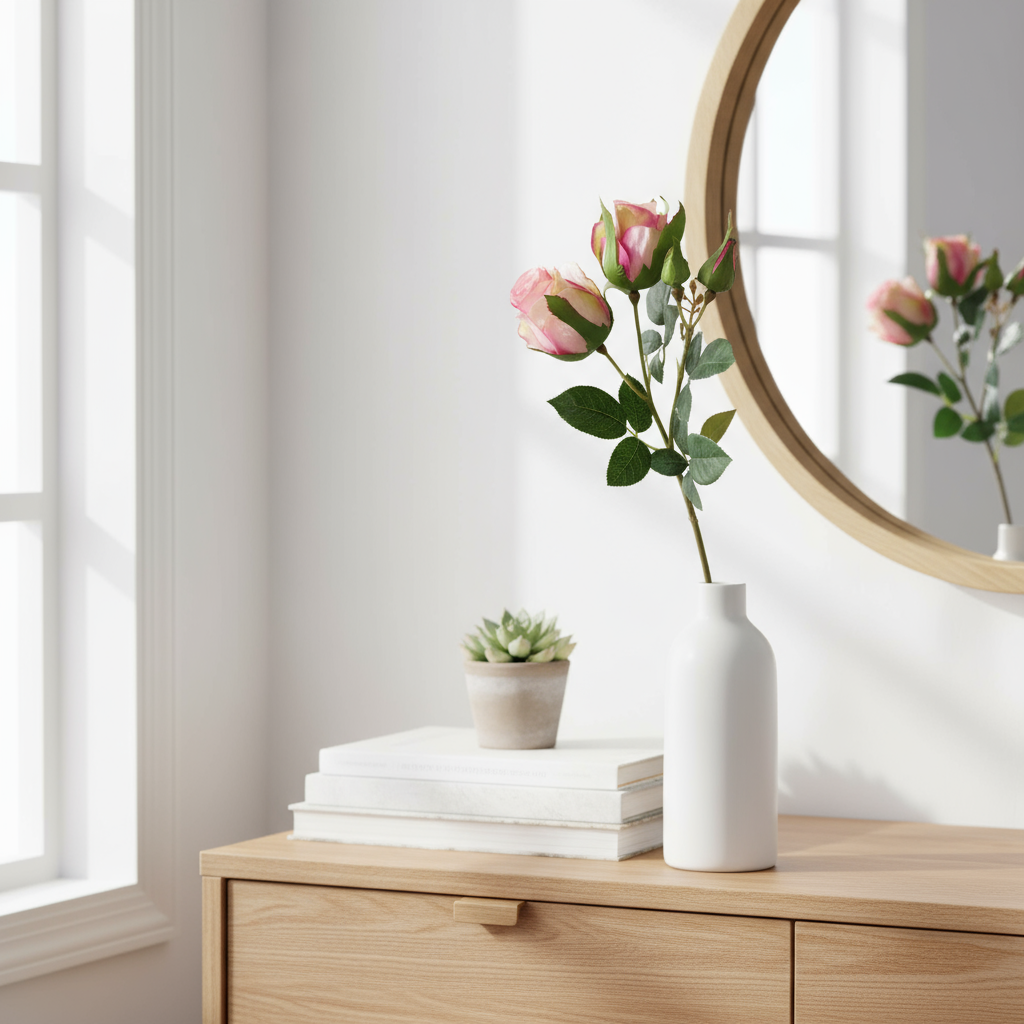 Med sine realistiske kronblader og naturtro stilk gir den et eksklusivt inntrykk som varer år etter år. Helt uten behov for vanning eller stell.